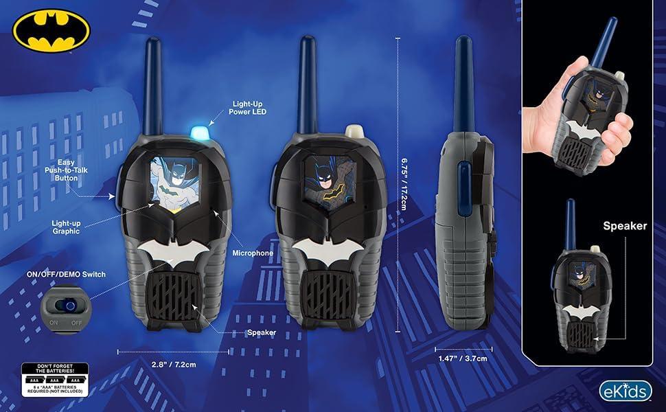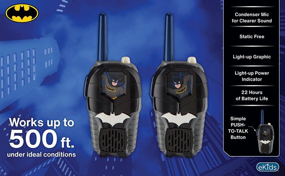Batman Toy Walkie Talkies for Kids, Static Free Indoor and Outdoor Toys for Boys with Light Up Graphics Designed for Fans of Batman Toys