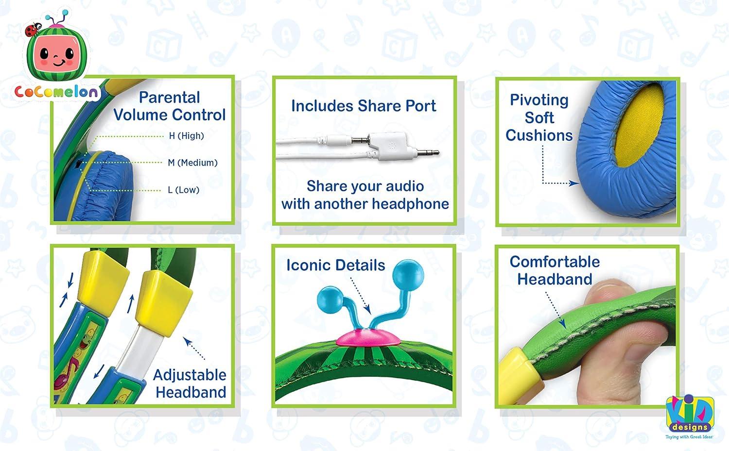Cocomelon Graphics: Over ear headphones feature cute and colorful graphics inspired by the popular show. This adorable design looks great on boys and girls alike!