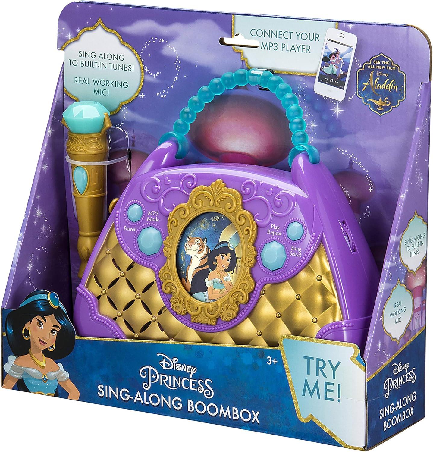Get more for your money with our exclusive bundle deals on Disney Aladdin Sing Along Boombox with Real Working Microphone Built in Music and Can Connect to MP3 Player, Purple and accessories.