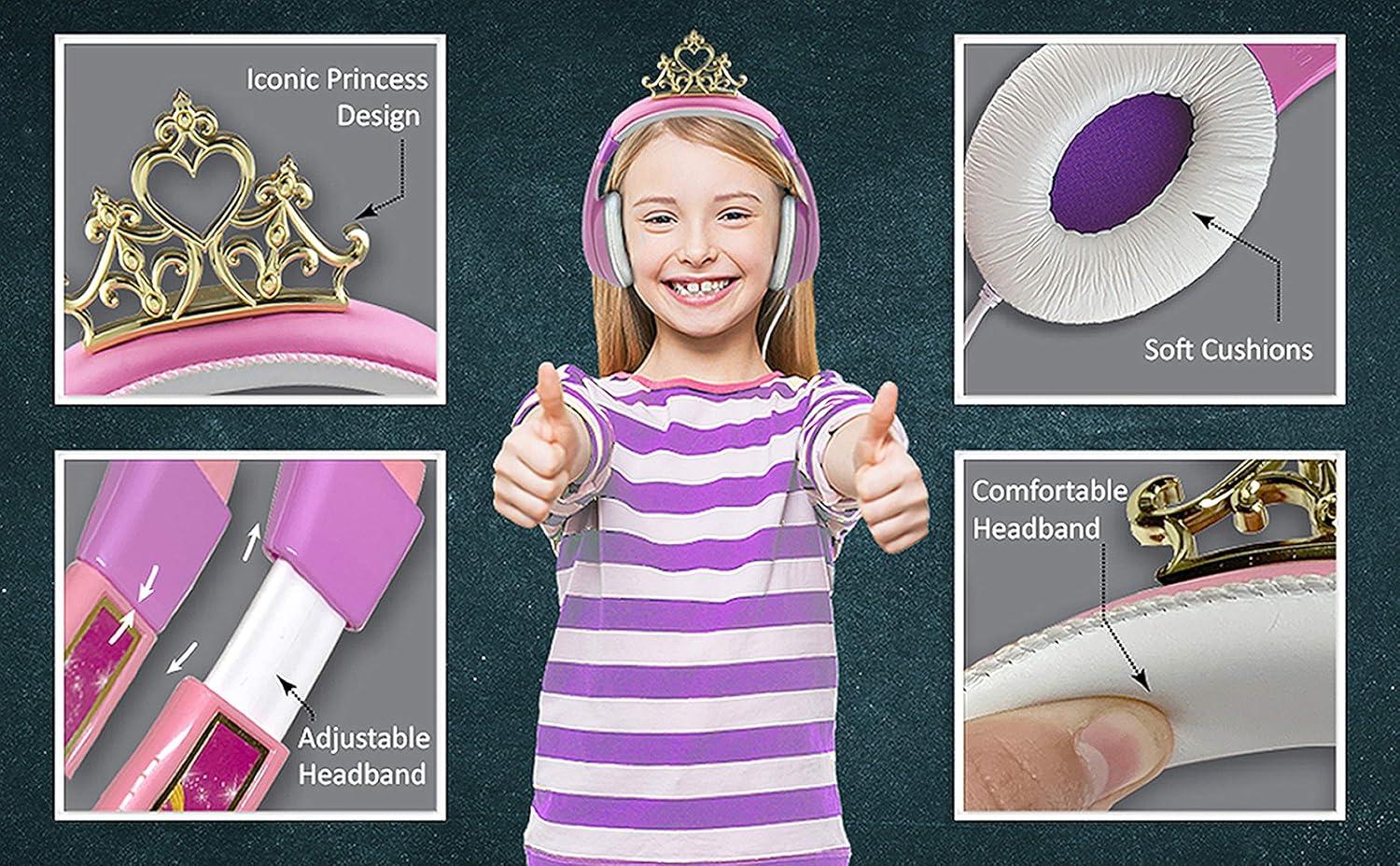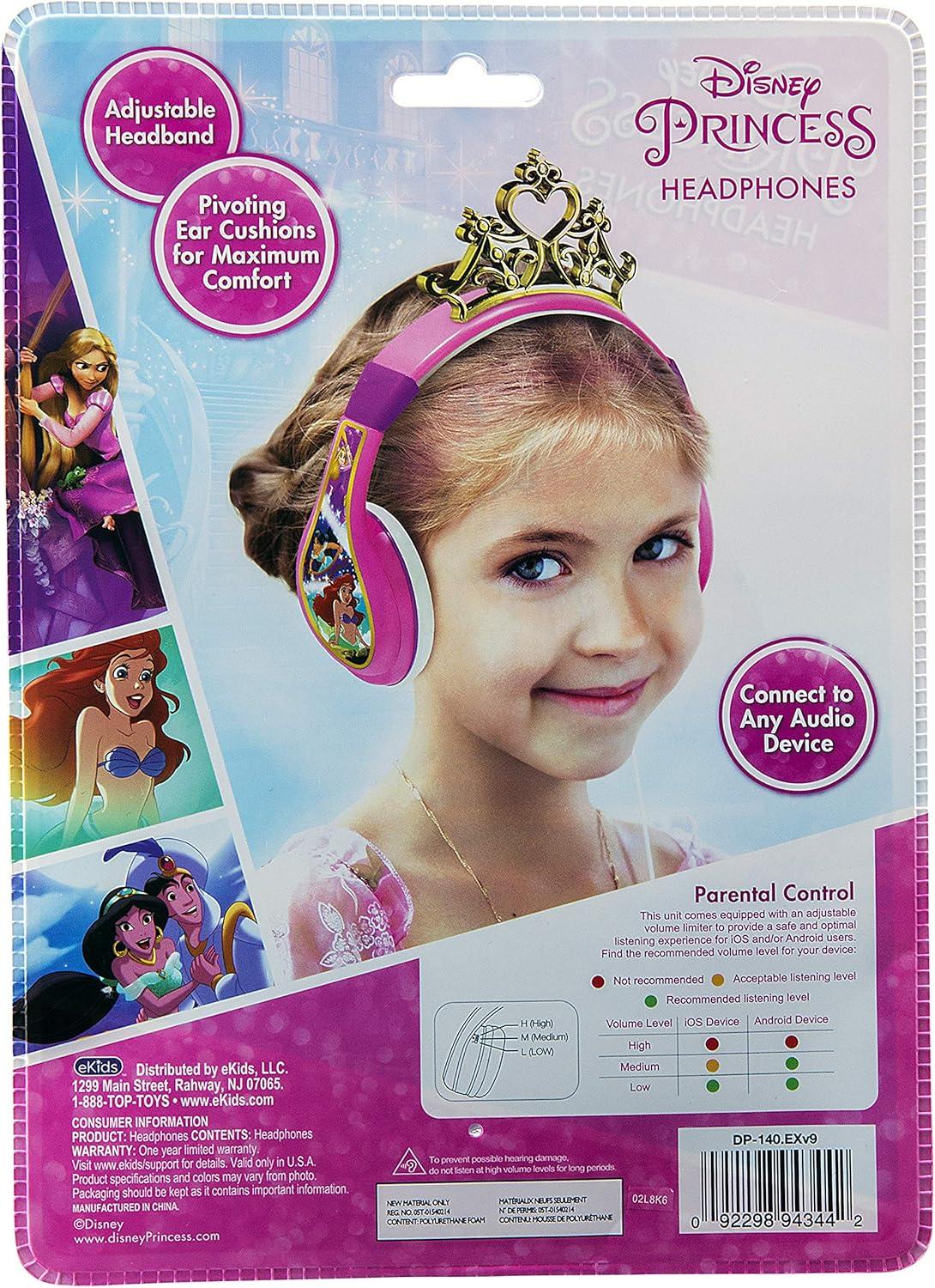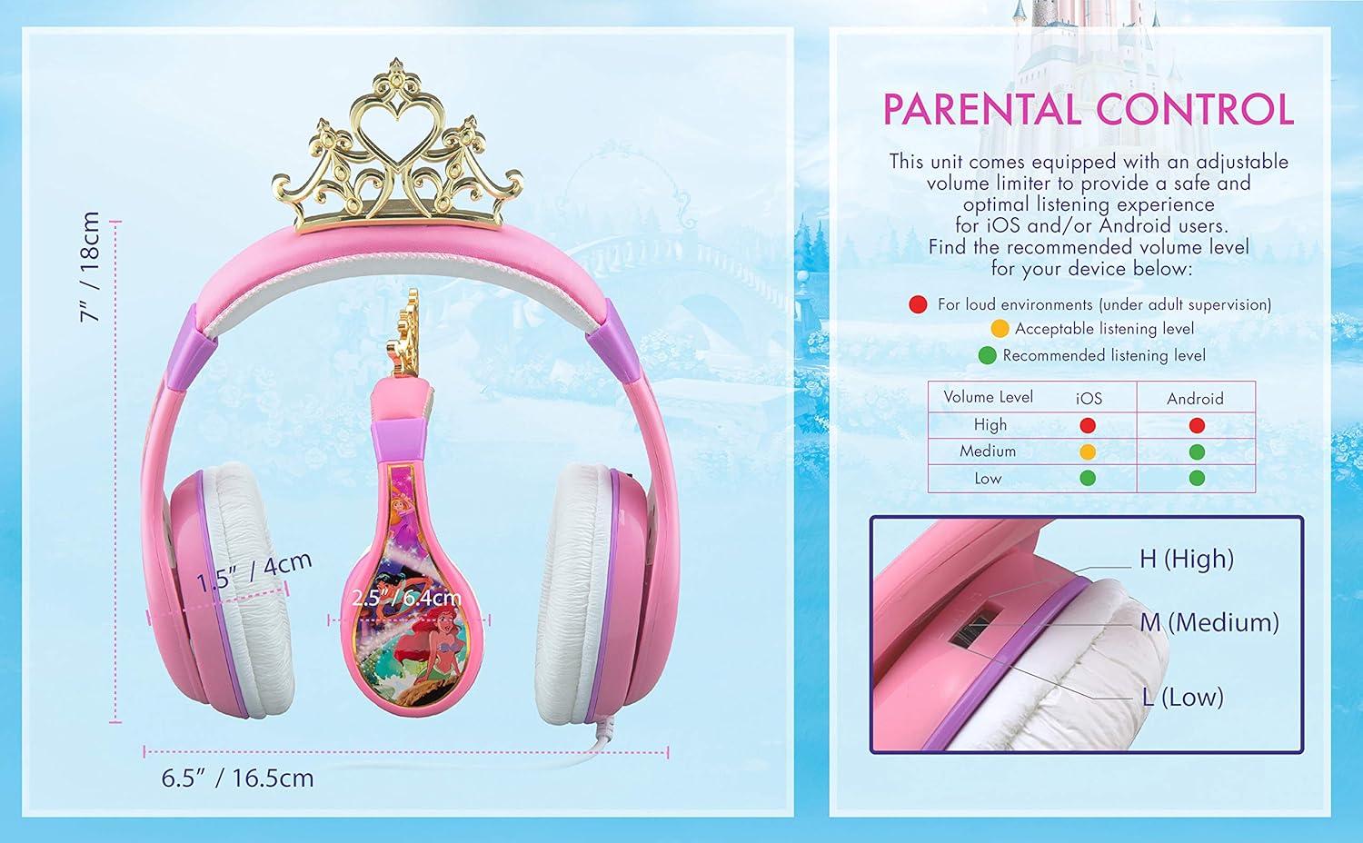 Disney Princess Kids Headphones, Adjustable Headband, Stereo Sound, 3.5Mm Jack, Wired Headphones for Kids, Tangle-Free, Volume Control, Foldable(Disney Princess)