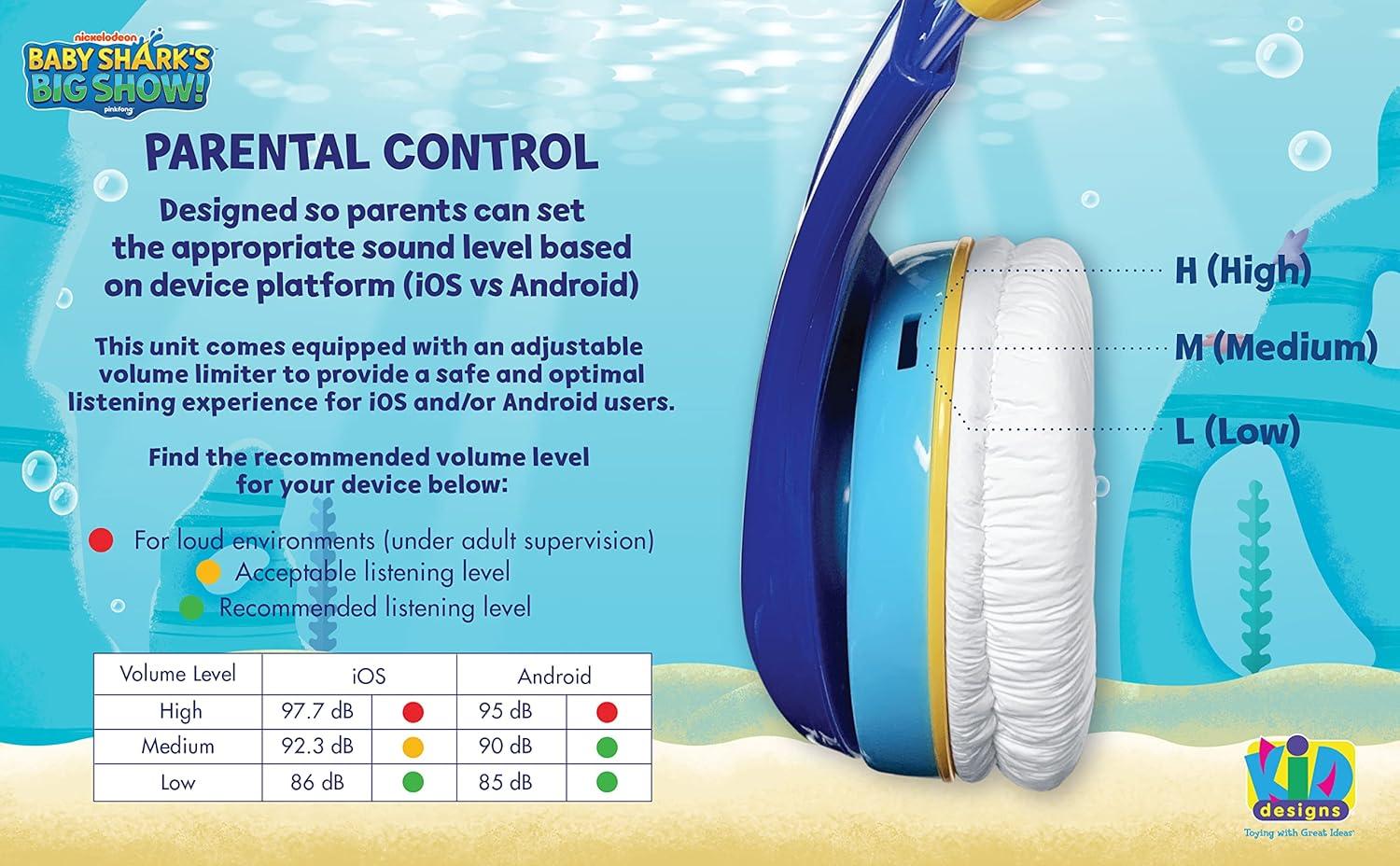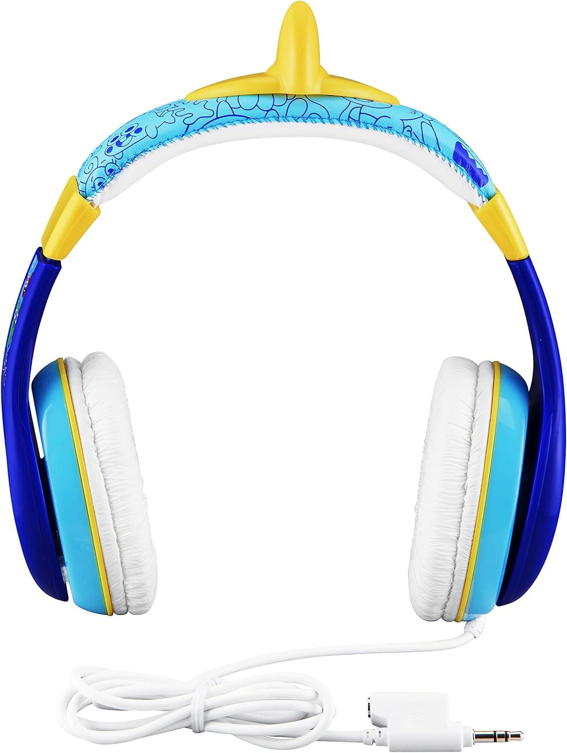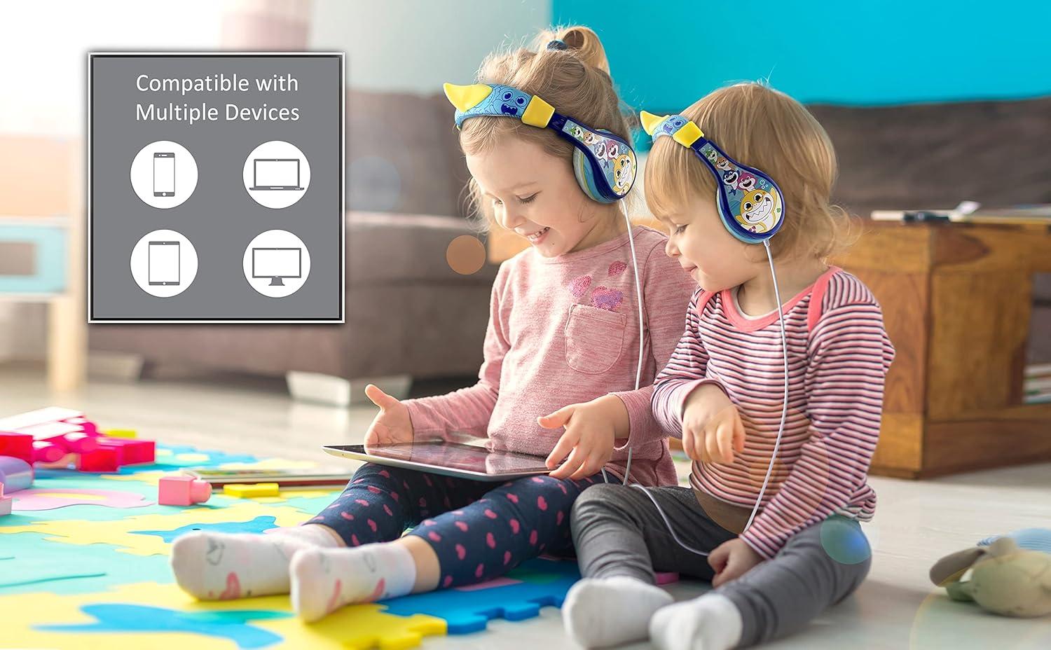 eKids Baby Shark Headphones for Kids, Wired for School, Home or Travel, Tangle-Free Toddler With Volume Control, 3.5mm Jack, Includes Splitter