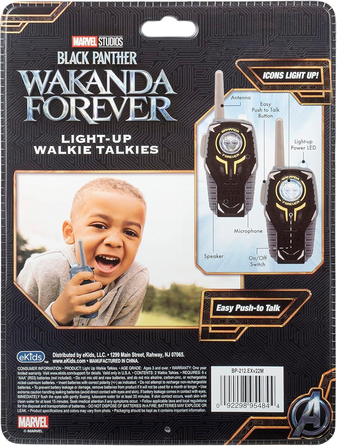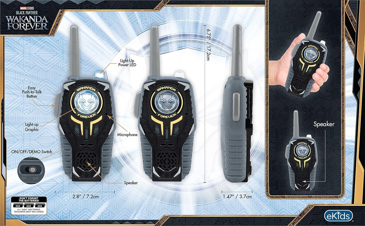 ekids Black Panther Wakanda Forever Toy Walkie Talkies for Kids, Static Free Indoor and Outdoor Toys for Boys Aged 3 and Up
