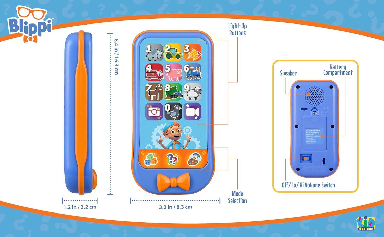 Blippi Design: Kids phone features adorable Blippi graphics and design. Plus, this Blippi toy includes volume control and automatic shut-off for a quieter playtime.