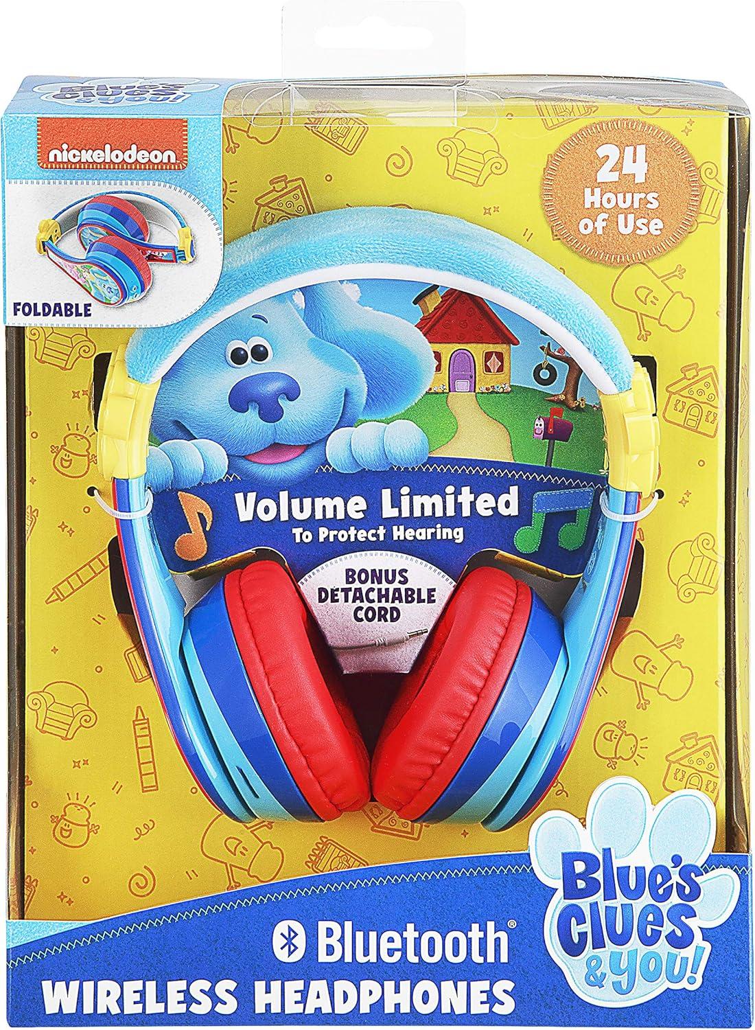 eKids Blues Clues Kids Bluetooth Headphones, Wireless with Microphone, Includes Aux Cord, Volume Reduced, Foldable for School, Home, or Travel