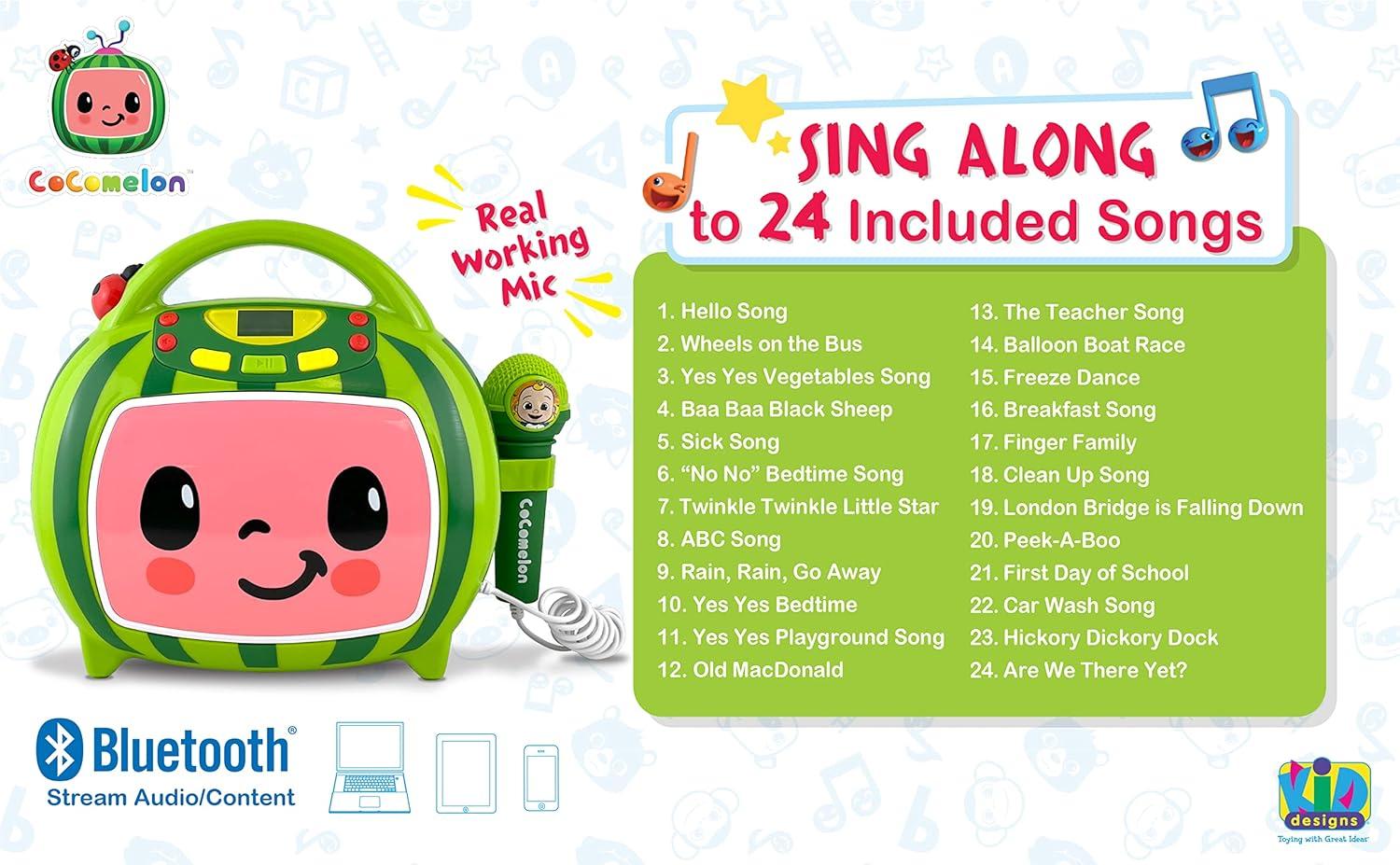 eKids Cocomelon Karaoke Machine, Portable Bluetooth Party Speaker with Microphone for Kids, Built-in Cocomelon Songs and Speaker with USB Port to Play Music