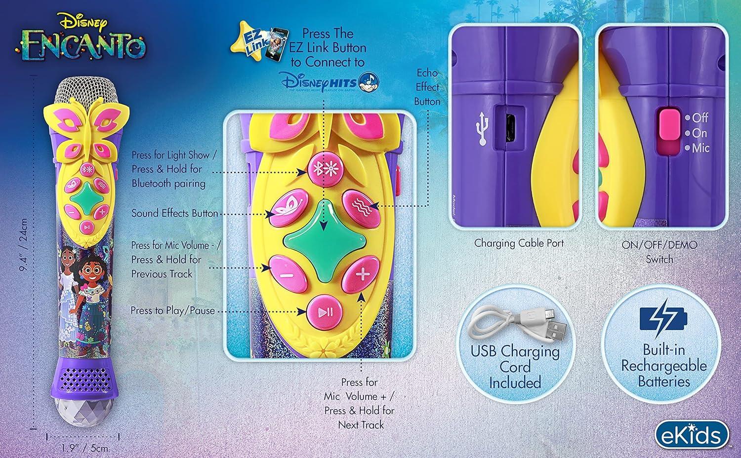 eKids Disney Encanto Karaoke Microphone with Bluetooth Speaker, Wireless Microphone Connects to Disney Songs Via EZ Link Feature, for Fans of Encanto Toys for Girls