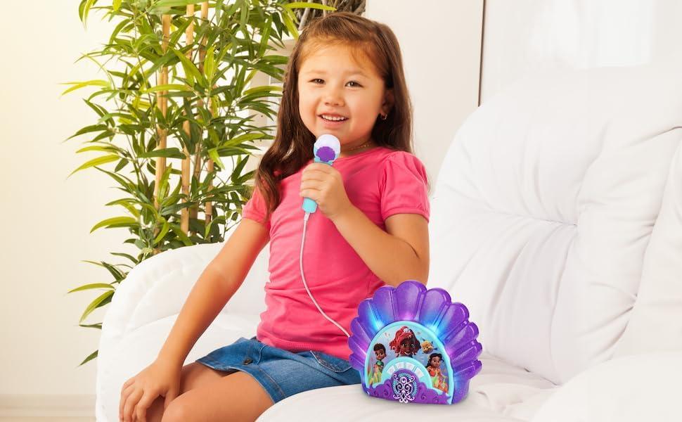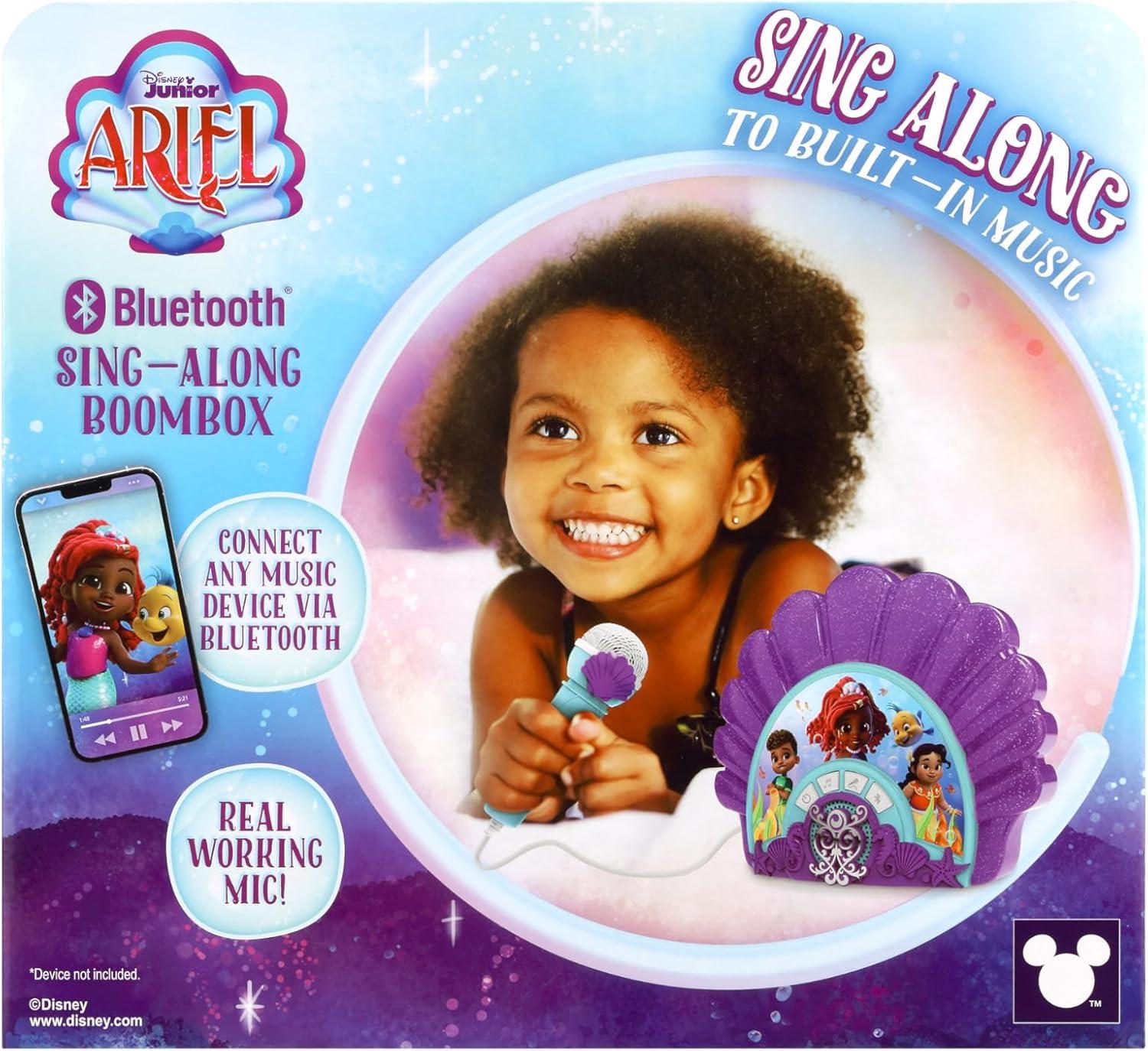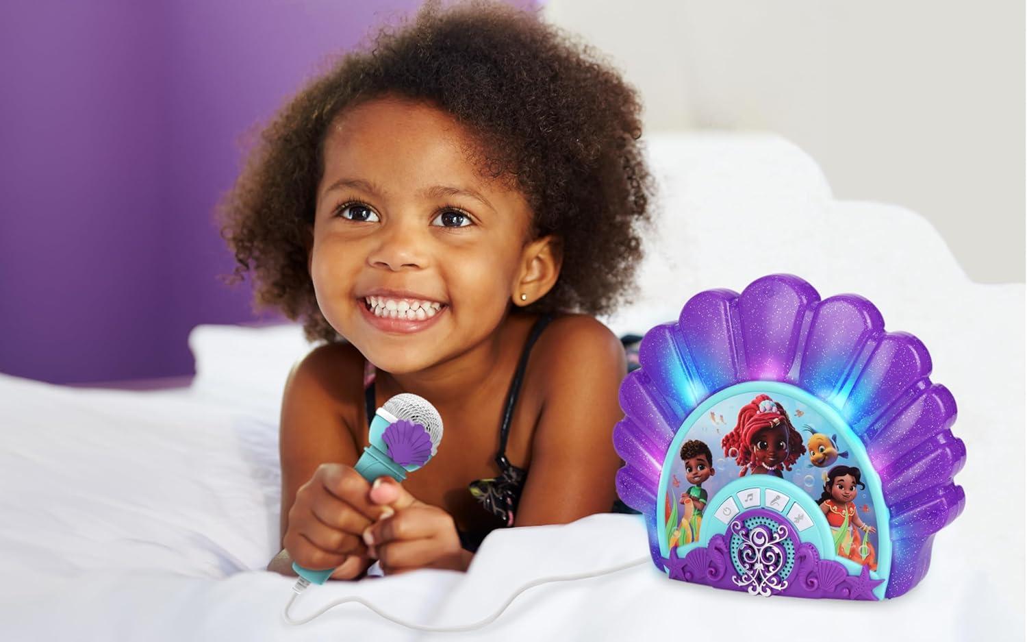 eKids Disney Junior Ariel Karaoke Microphone with Bluetooth Speaker for Fans of Disney Toys, Kids Karaoke Machine with Built in Music