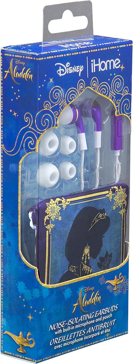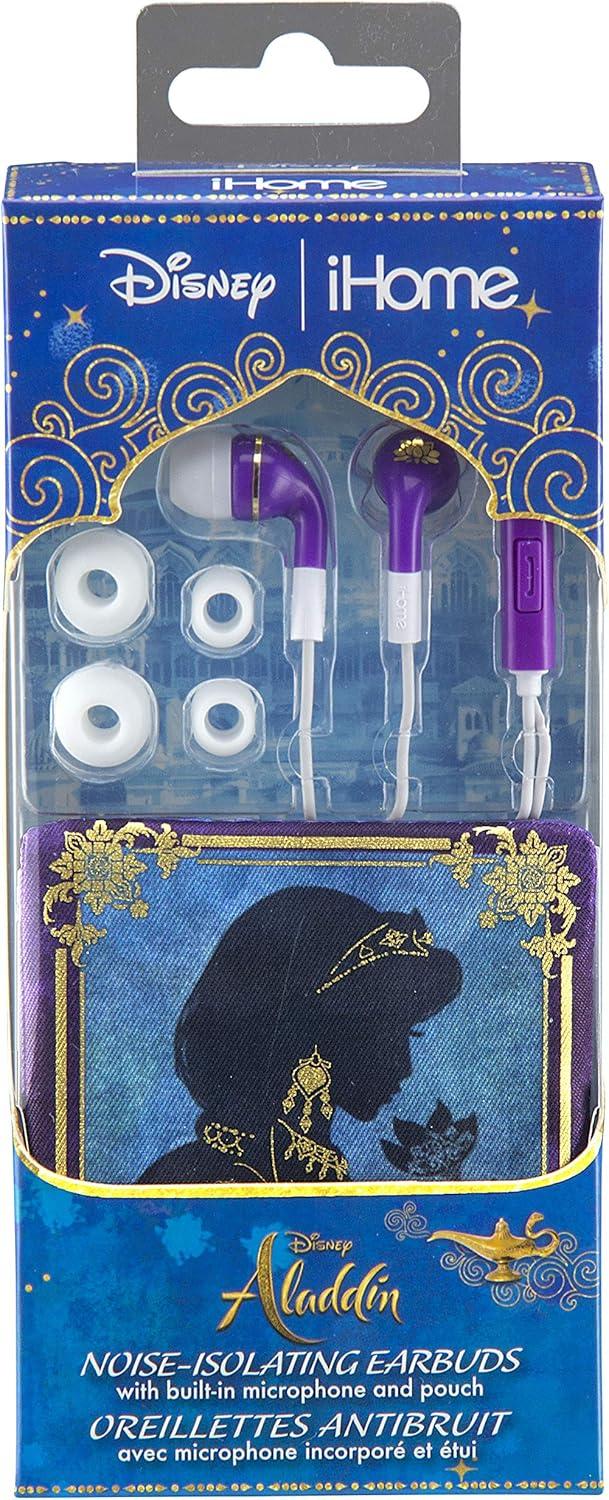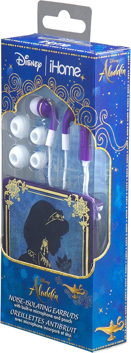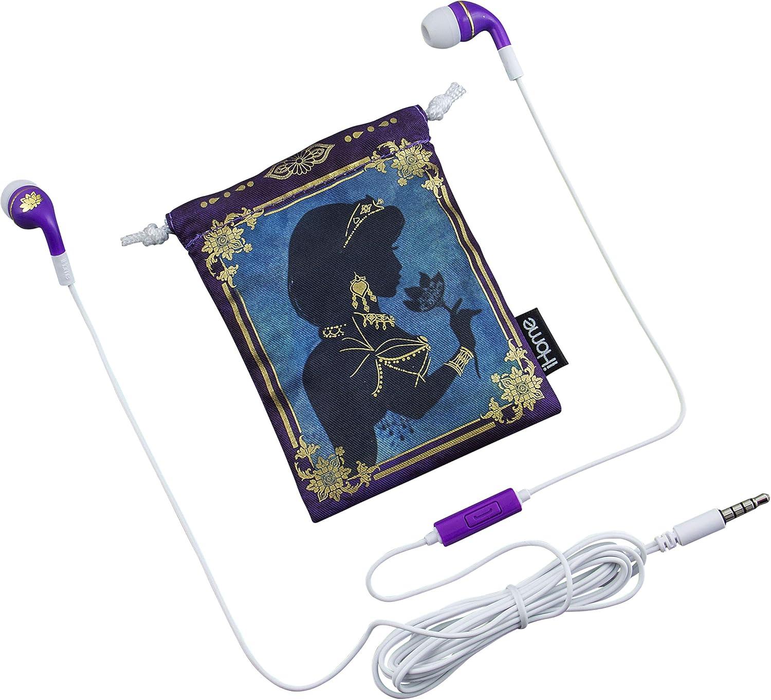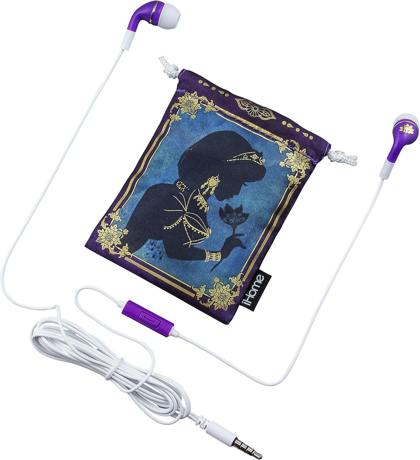 eKids Disney Princess Jasmine Earbud & in-Ear Headphones, Aladdin Wired Earbuds with Microphone, Ear Buds with Pouch for Fans of Aladdin Merch & Princess Jasmine Gifts