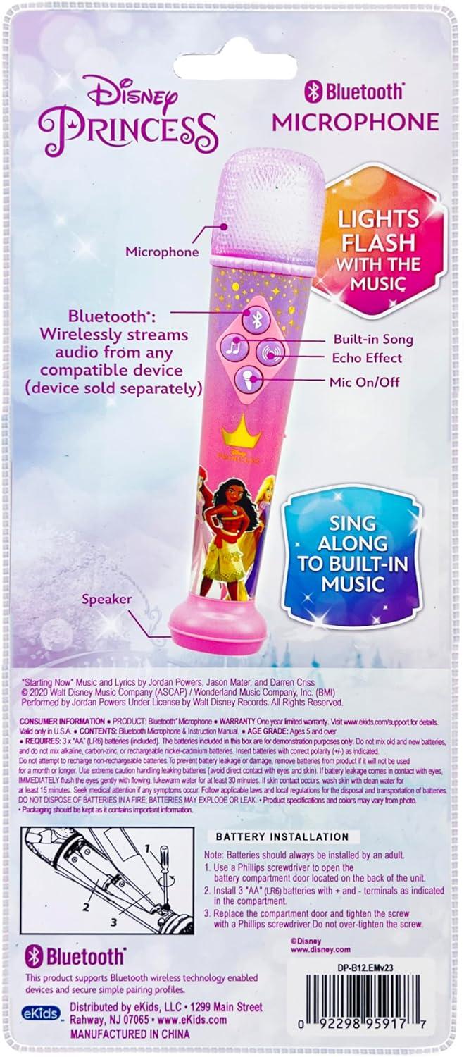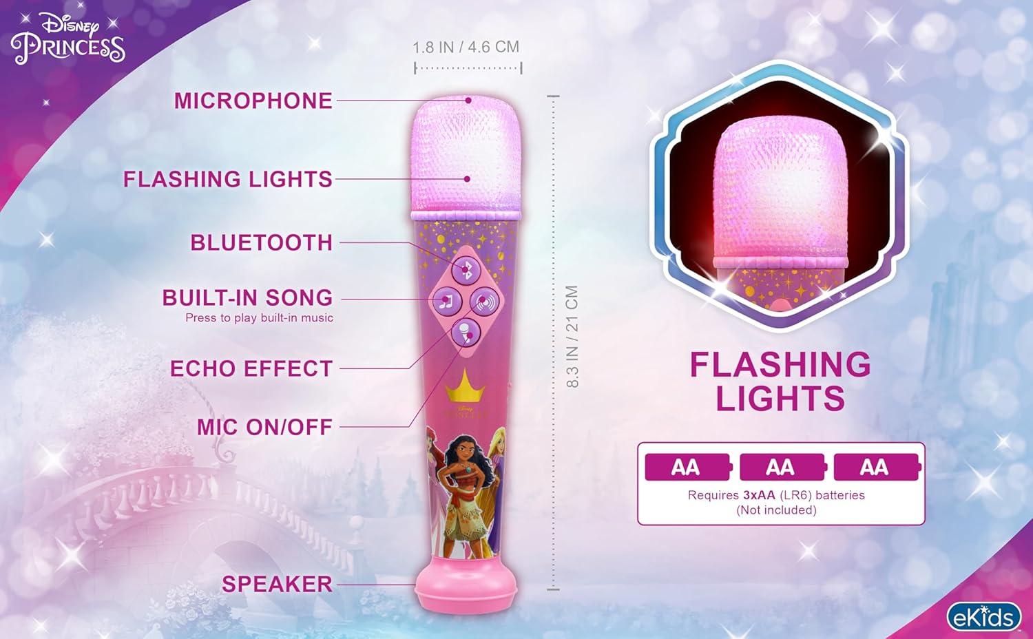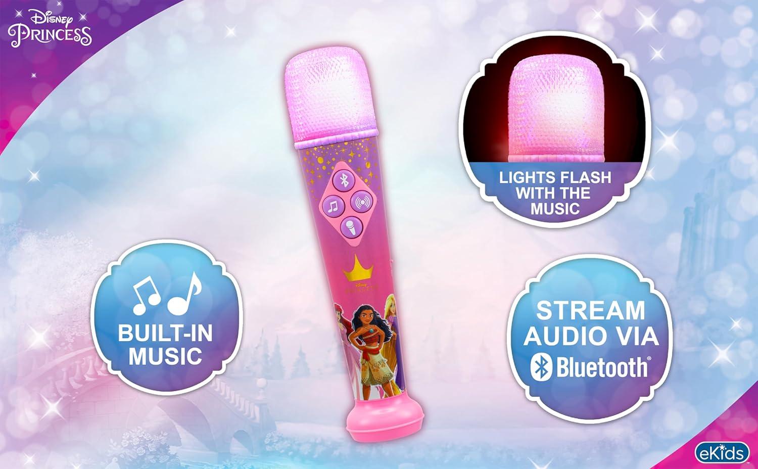eKids Disney Princess Karaoke Microphone for Kids, Bluetooth Microphone Includes Built-in Music and Light Show, Designed for Fans of Disney Princess Toys