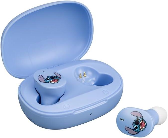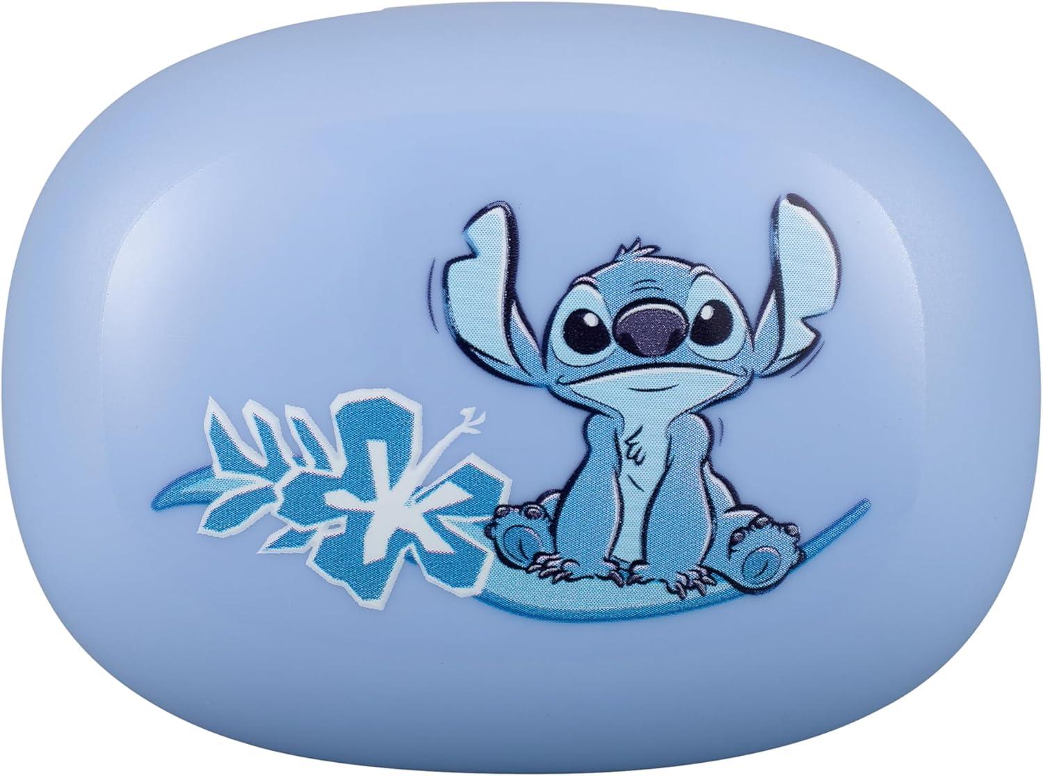 Disney Stitch Design: Featuring Stitch graphics and matching charging case, these Bluetooth earphones have an ergonomic shape that provides lasting comfort. Includes rubber ear cushions in 3 sizes: small, medium, and large.