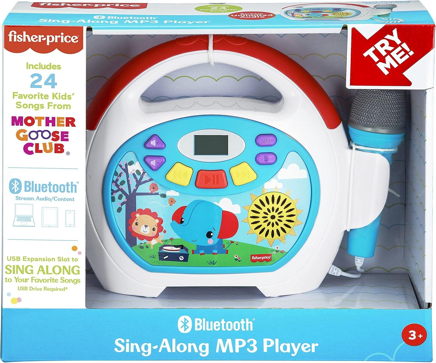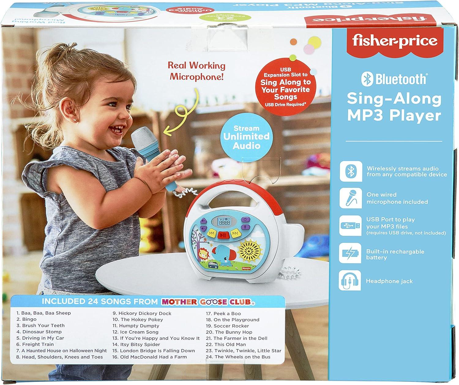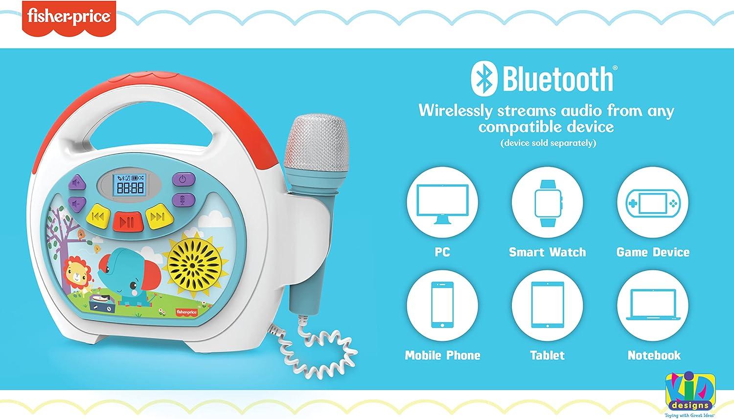 eKids Fisher Price Karaoke Machine, Portable Bluetooth Speaker with Microphone for Kids, Built-in Mother Goose Club Songs