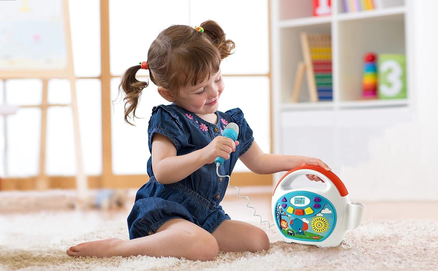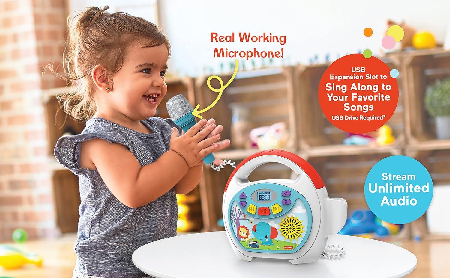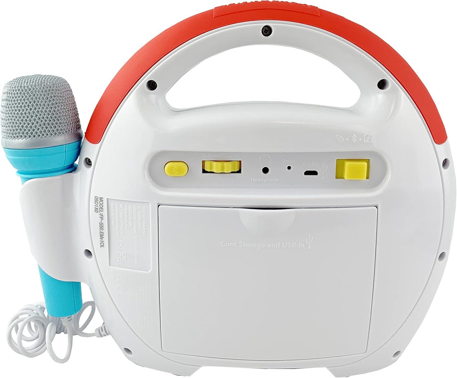 eKids Fisher Price Karaoke Machine, Portable Bluetooth Speaker with Microphone for Kids, Built-in Mother Goose Club Songs