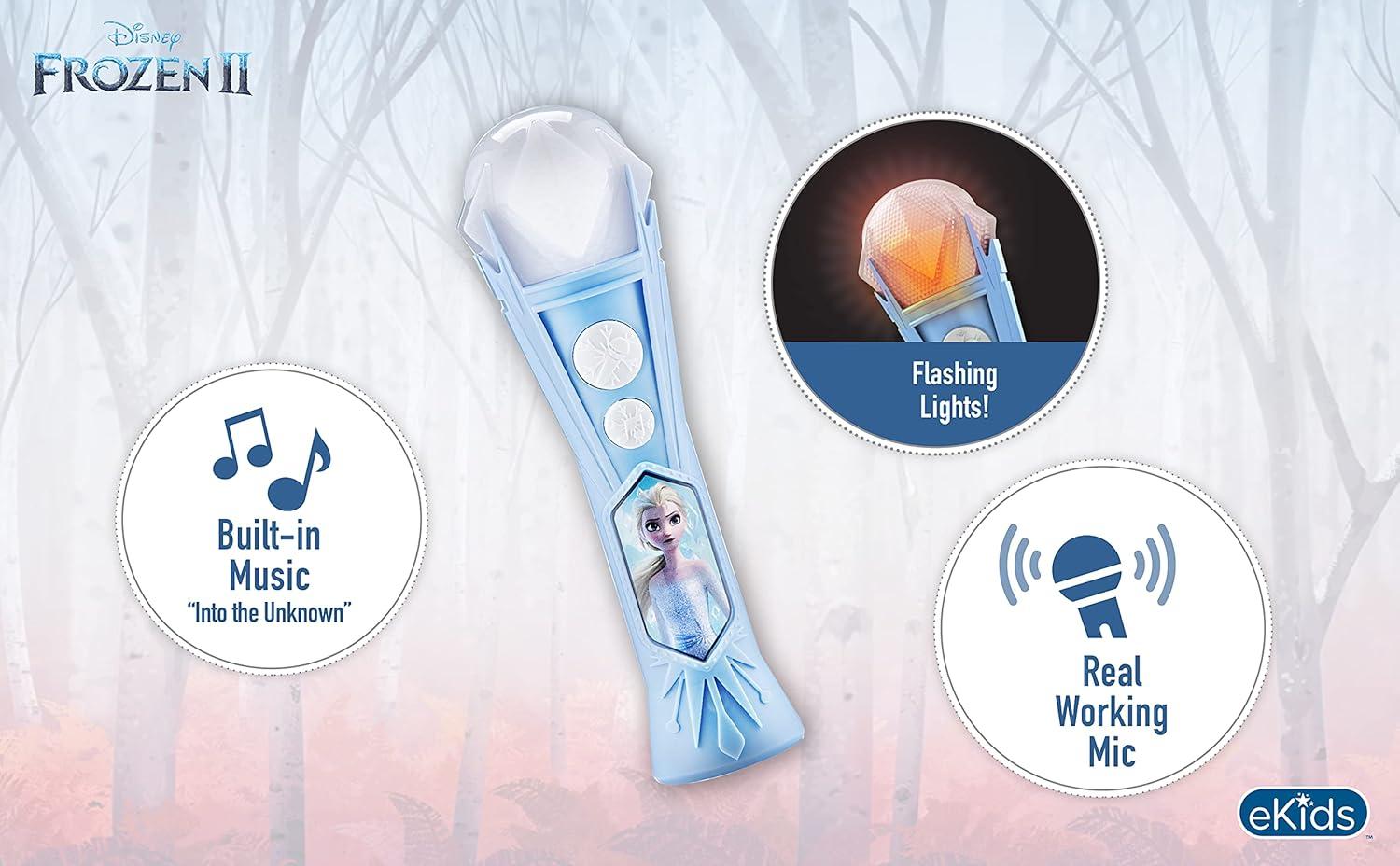 eKids Frozen Sing Along Microphone Toy for Kids with Built-in Music and Flashing Lights, Designed for Fans of Frozen Toys (Frozen 2020)(Frozen NEW)