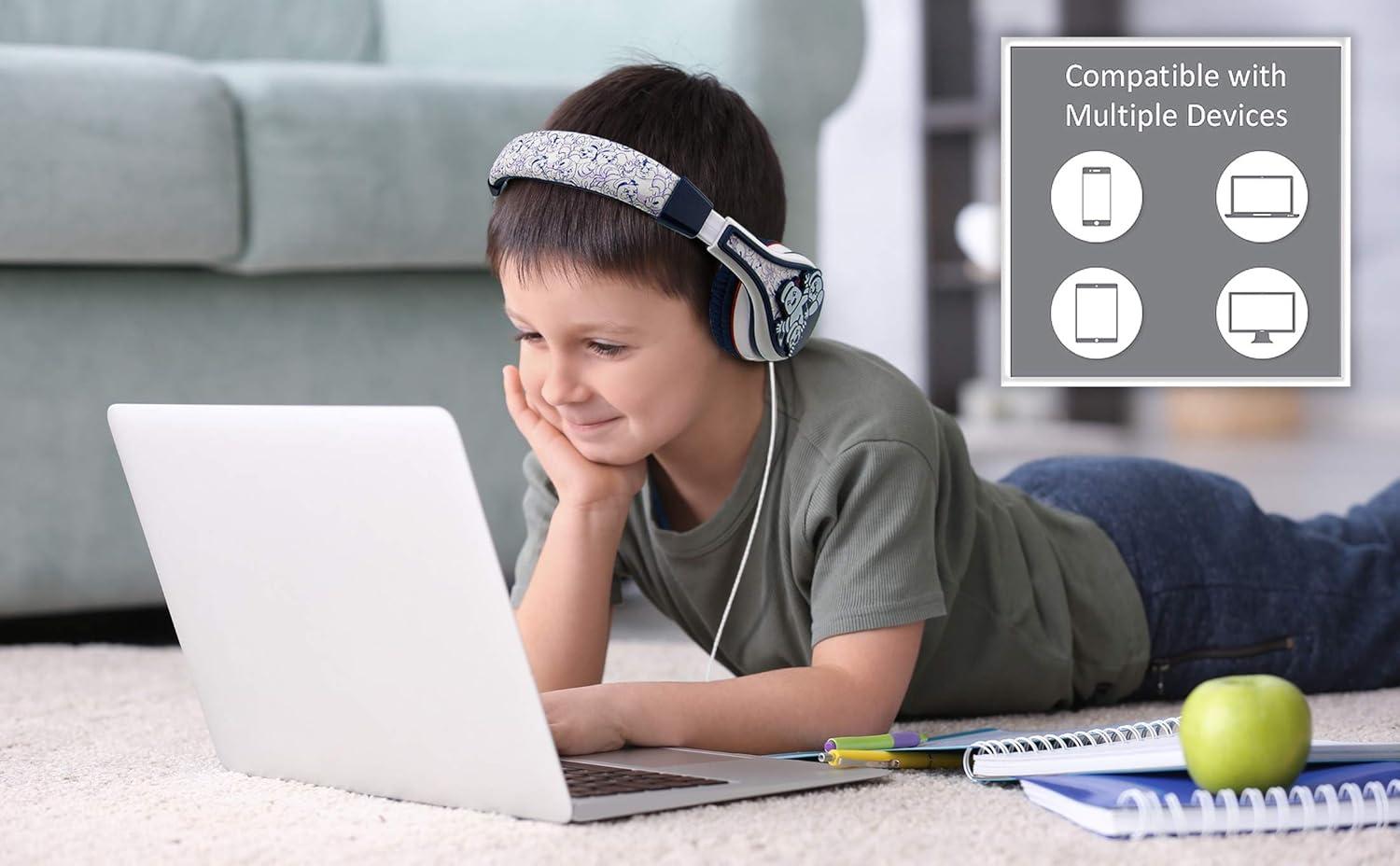Kids Headphones: Connect any device including smartphones, tablets, and computers via 3.5mm jack to enjoy high quality sound for entertainment and/or education. Listen to music, watch movies, TV, and YouTube, or use for remote learning, virtual classes, audiobooks, and more.