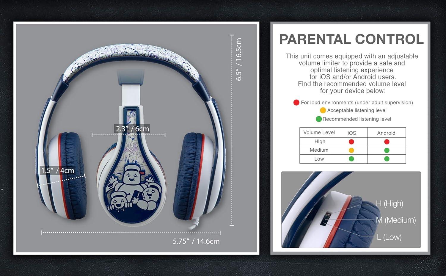 Ghostbusters Design: Over ear headphones feature iconic graphics inspired by the popular film. Looks great on any little Ghostbuster!