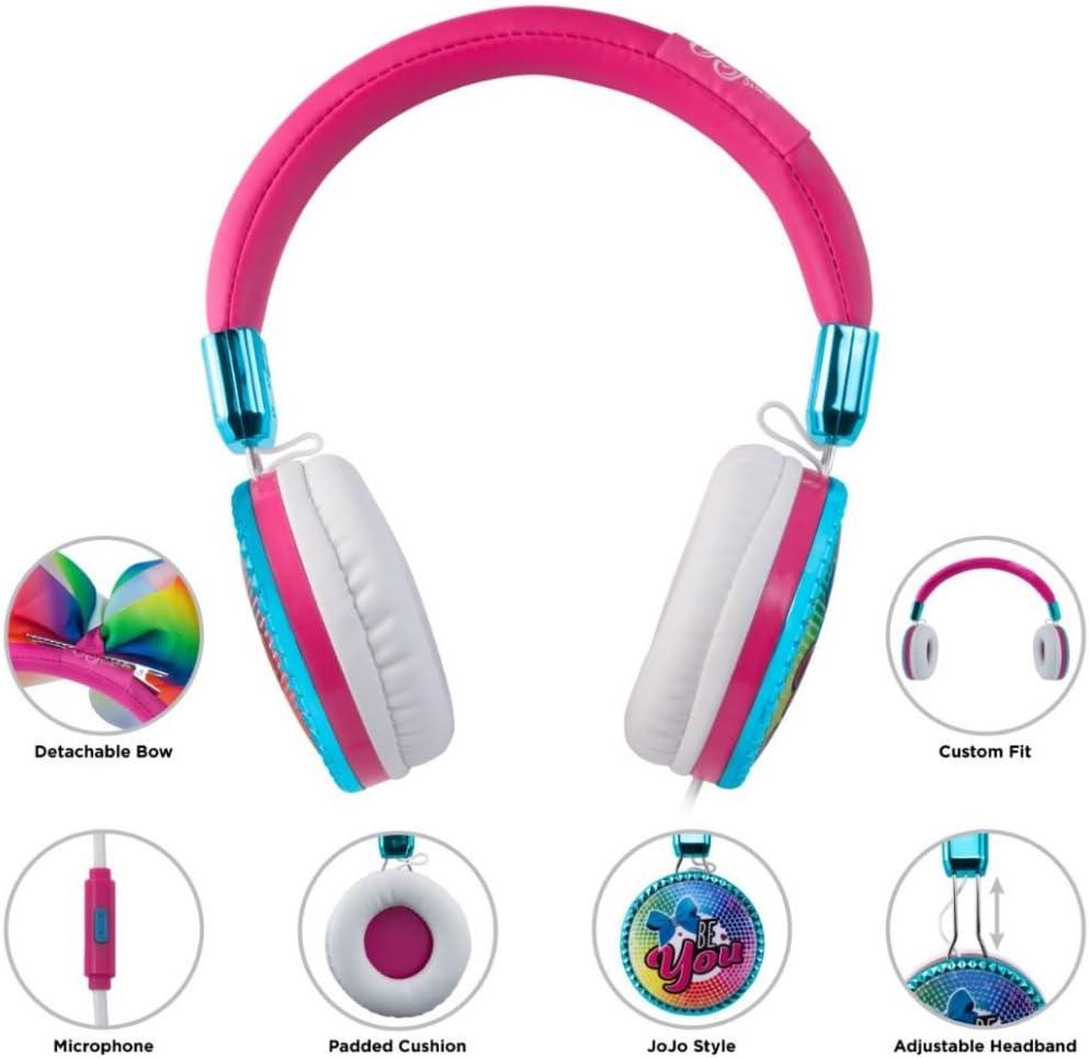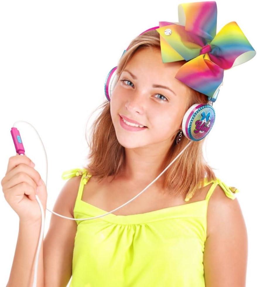 .With the all new JoJo Siwa Bow fashion headphones you can listen to your favorite tunes in colorful style. You can be yourself and enjoy whatever music you like while you look like a sensation with one of JoJo's bows on your headphones. Listen to quality sound while 40mm drivers deliver a rich detailed audio experience. If you get a phone call while listening don't worry because the built in microphone allows calls to be received when listening on a smartphone. The colorful style performance is accented by a sleek and contemporary design. Be comfortable with an adjustable headband and padded ear cushions for a custom fit. This is perfect for any JoJo fan and music lover.