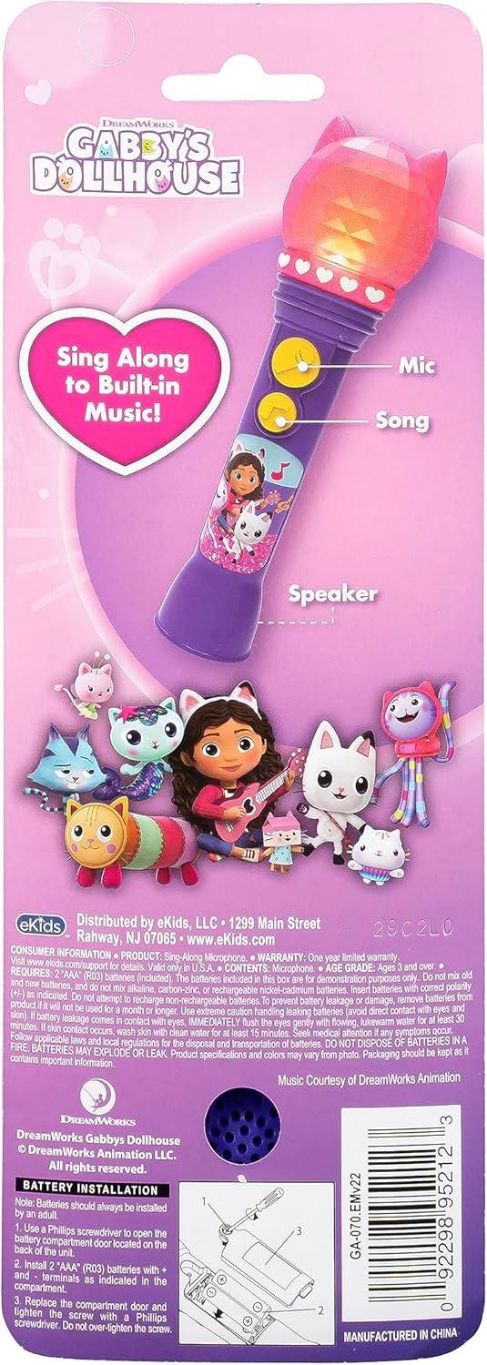 ekids KIDdesigns Gabby’s Dollhouse Sing Along Microphone for Kids | Real Working Microphone| Built in Music LED Flashing Light and Speaker| Kids Toys Portable Karaoke Machine, KD-GA-070