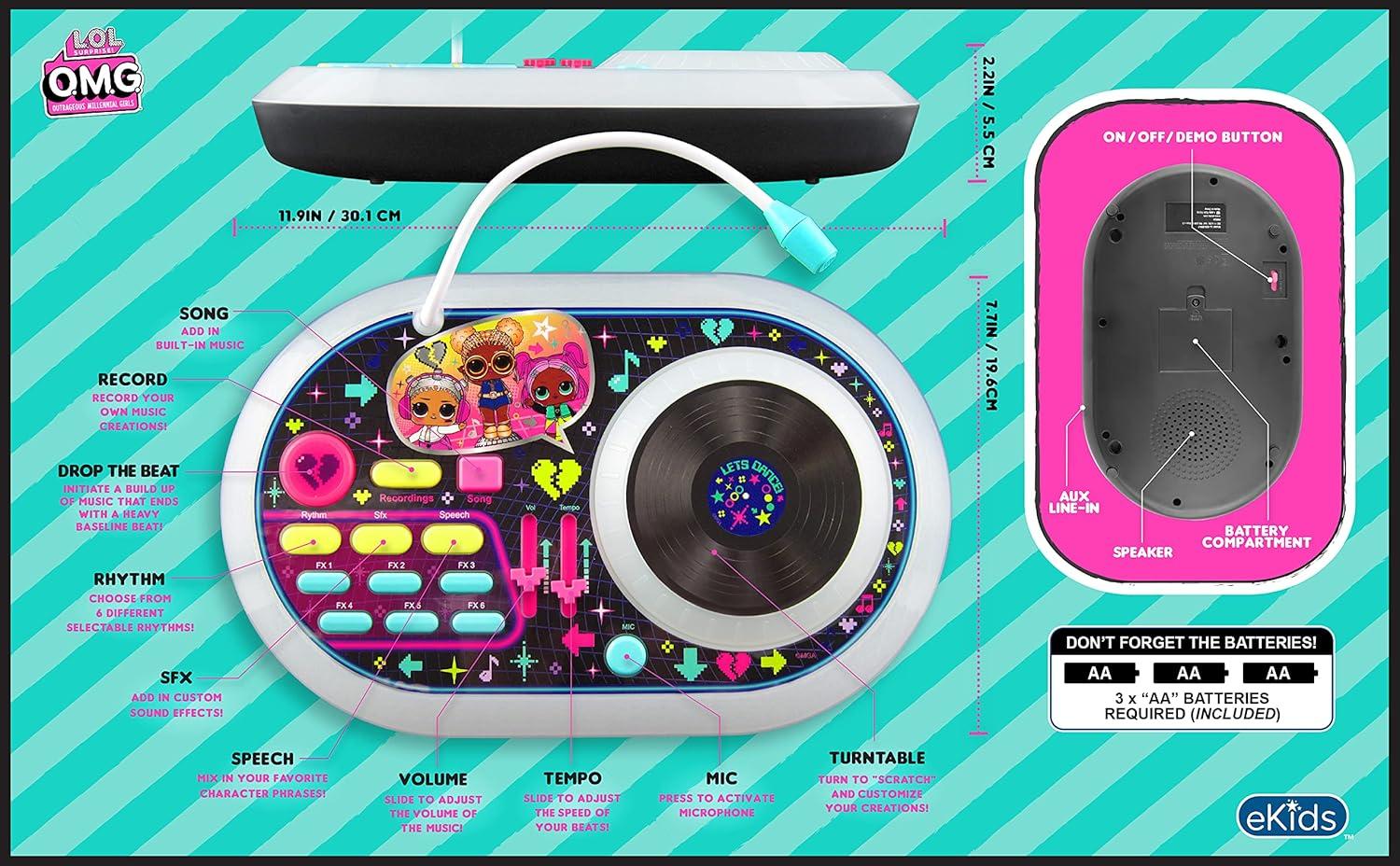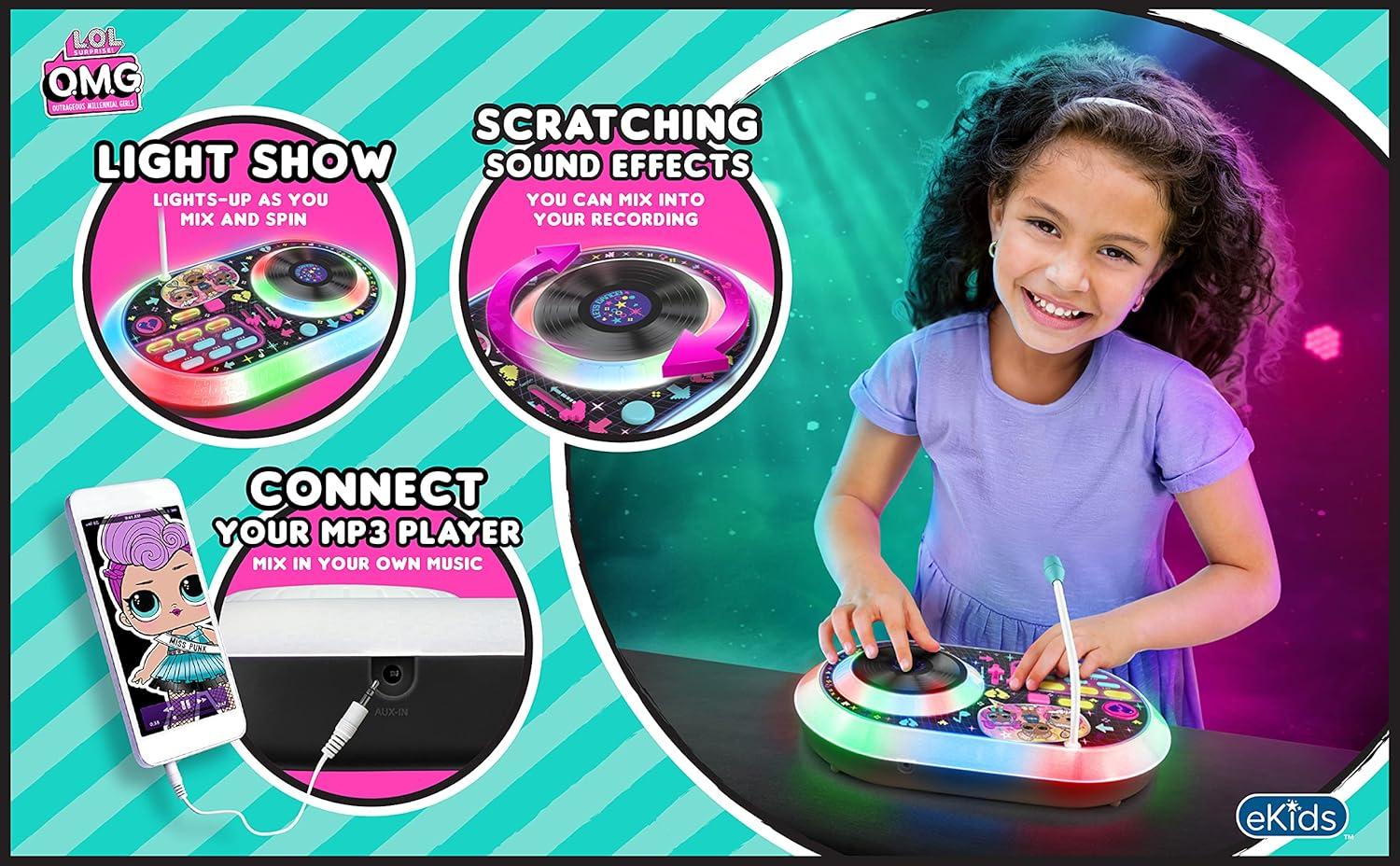 eKids LOL Surprise DJ Party Mixer Turntable Toy with Built in Microphone for Kids, Record and Mix Your Favorite Songs, for Fans of LOL Toys for Girls