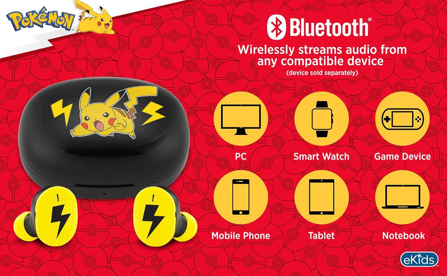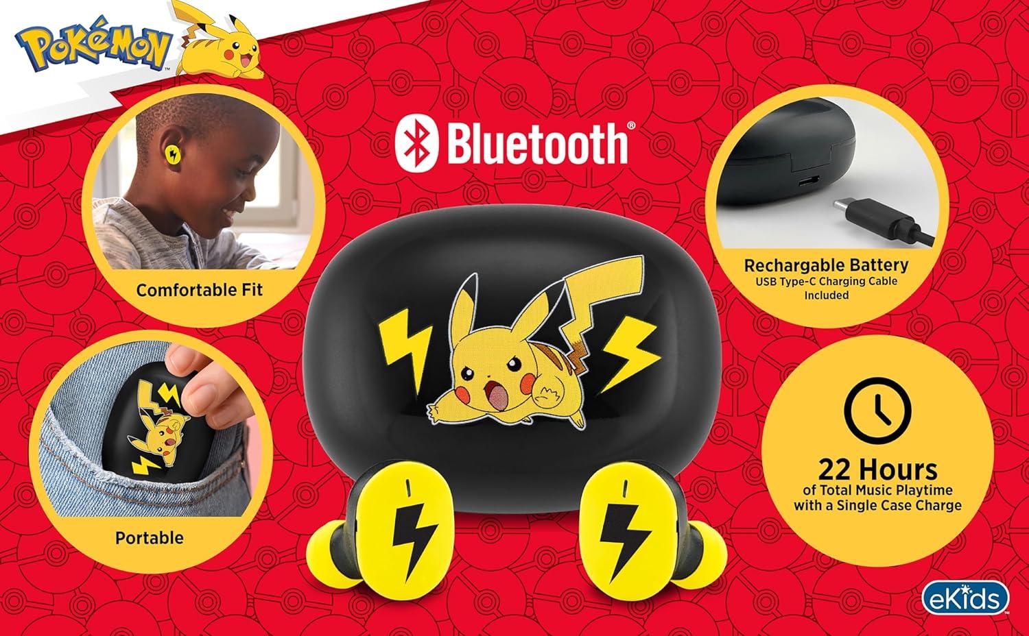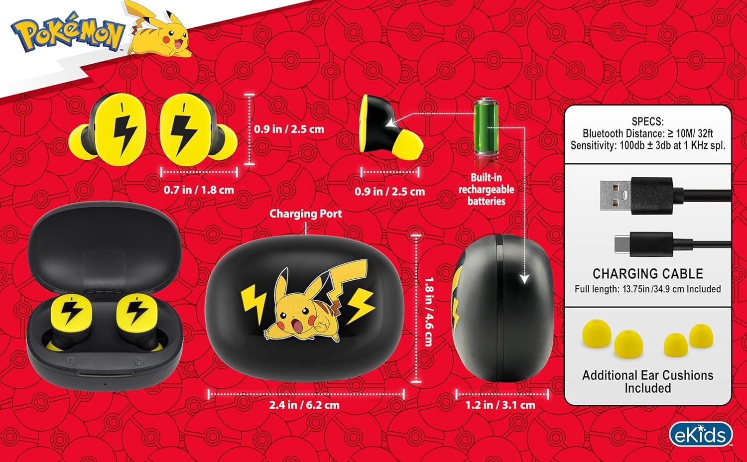 eKids Minecraft Bluetooth Earbuds with Microphone, Wireless Earbuds with Charging Case for Ear Buds, Designed for School, Home, or Travel(Pokemon)