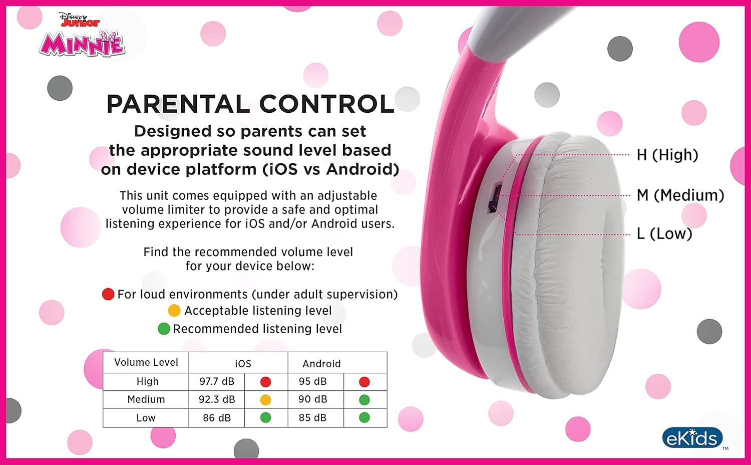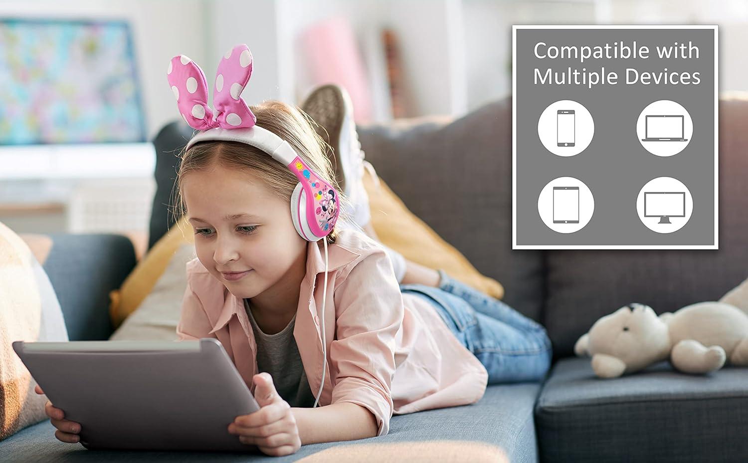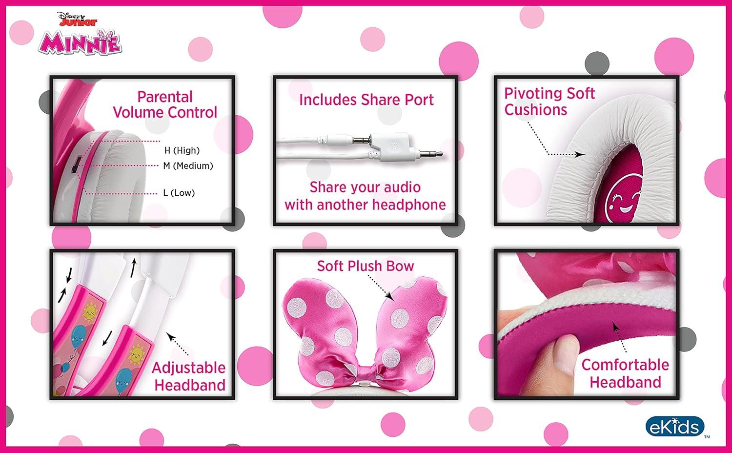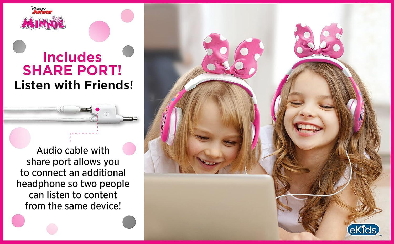 eKids Minnie Mouse Headphones for Kids, Wired Headphones for School, Home or Travel