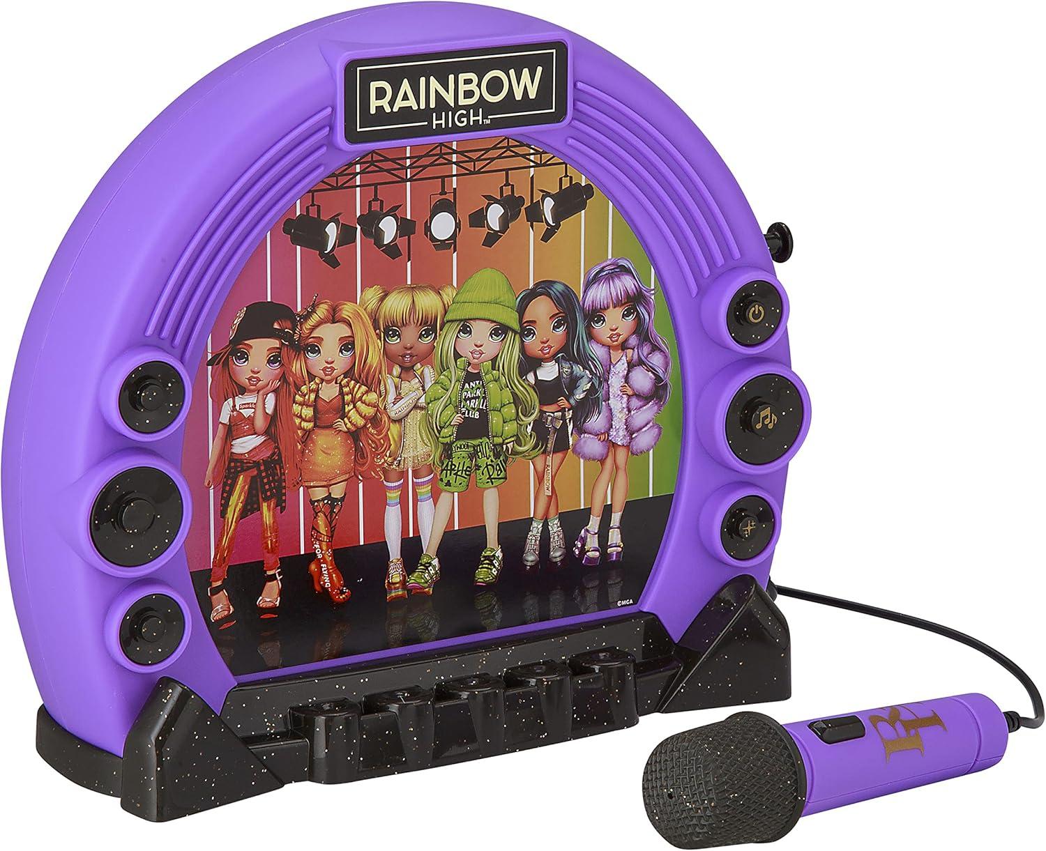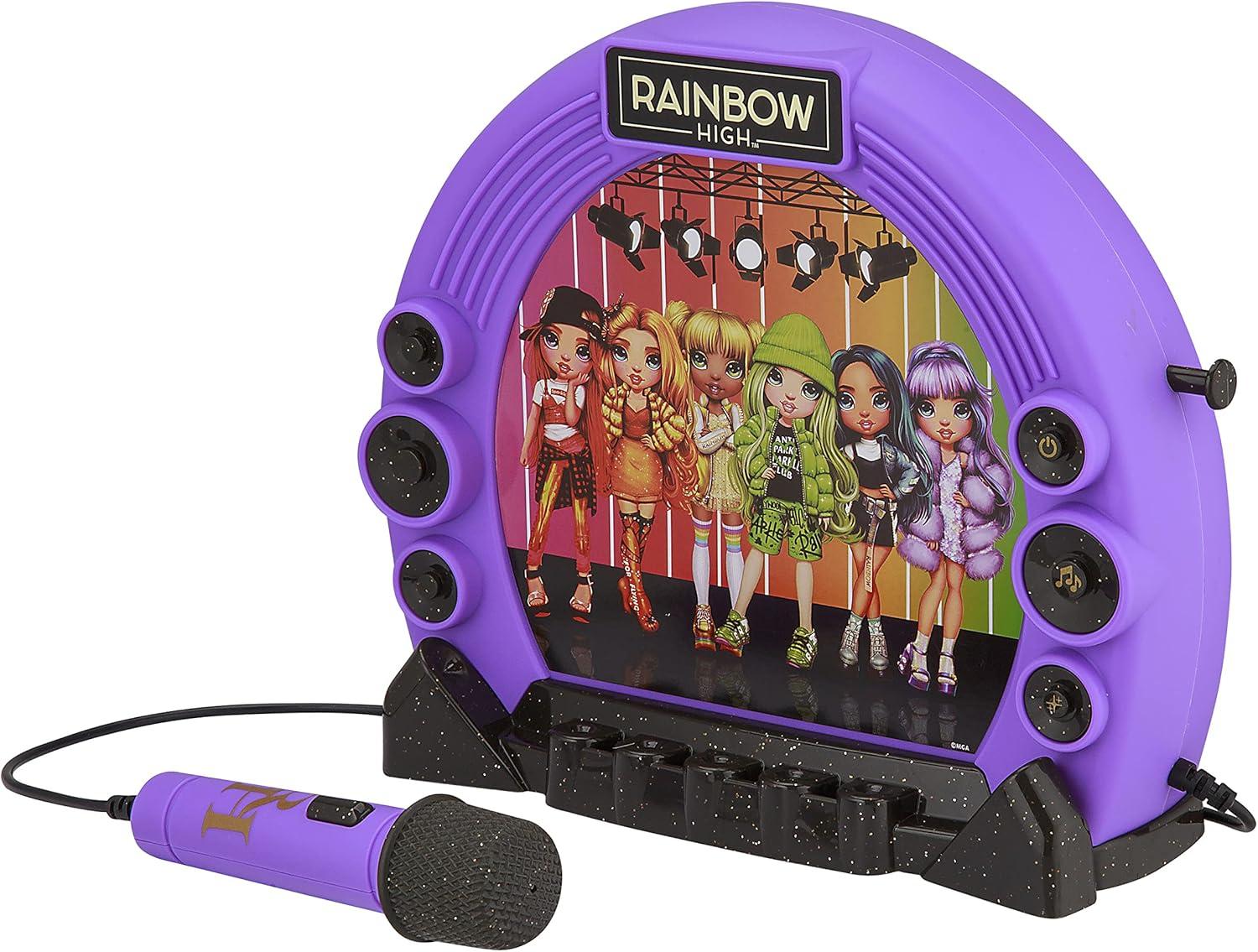 eKids RH-115.EMv22 Rainbow High Sing Along Boombox with Microphone Built in Music Flashing Lights Real Working Mic
