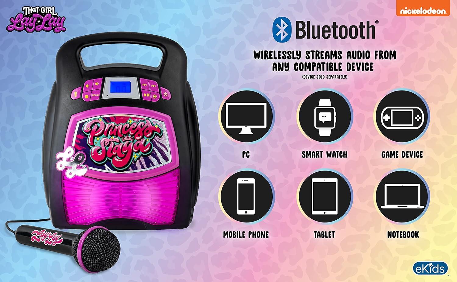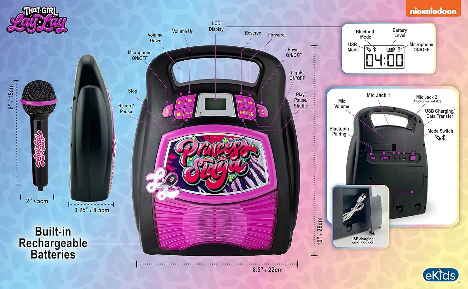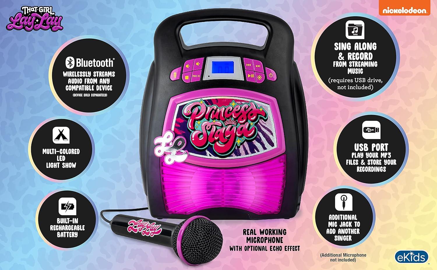 eKids That Girl Lay Lay Karaoke Machine for Kids, Bluetooth Speaker with Microphone and Karaoke Recorder to Save and Share Performances via USB Port