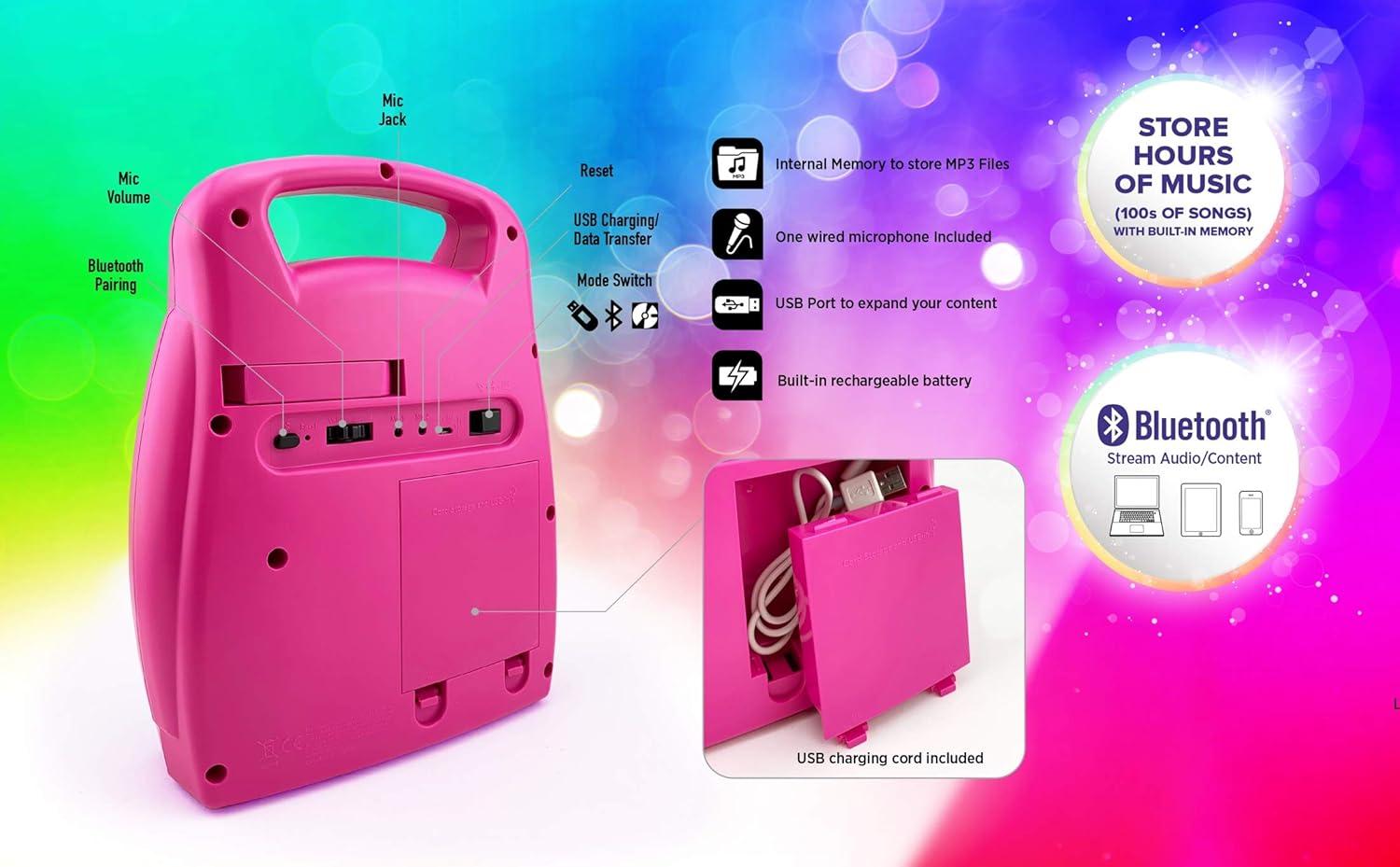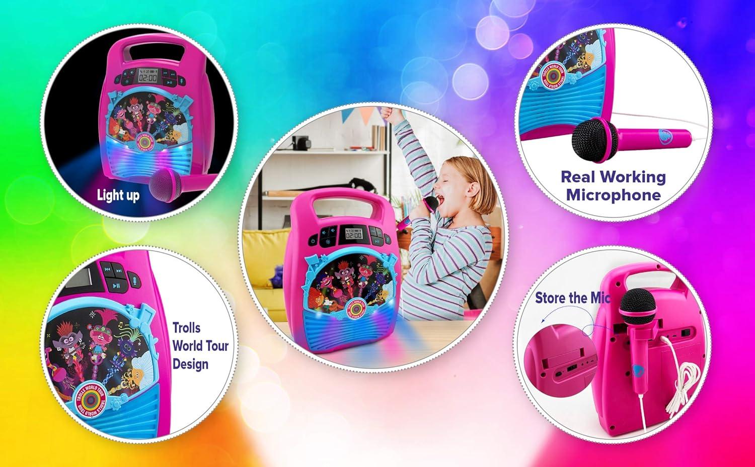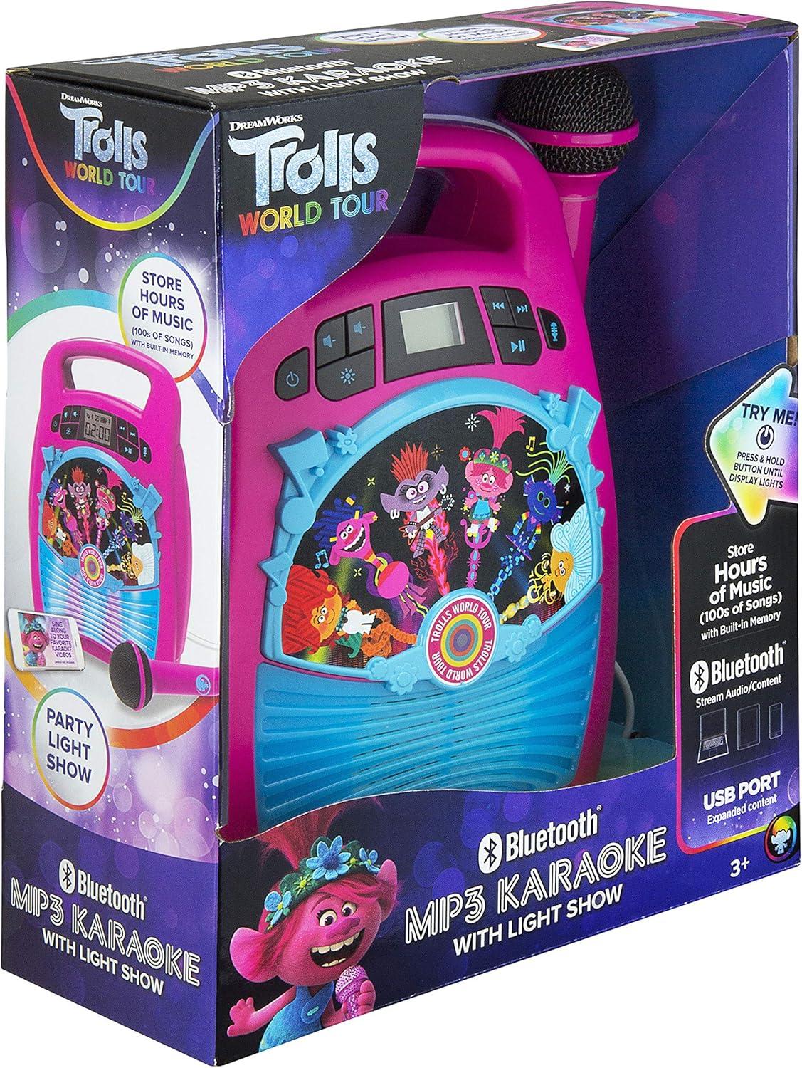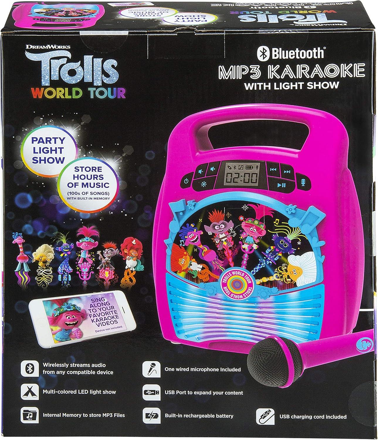 eKids Trolls Karaoke Machine Bluetooth MP3 Karaoke Player Portable with Light Show Store Hours of Music with Built in Memory Sing Along Using The Real Working Microphone USB Port