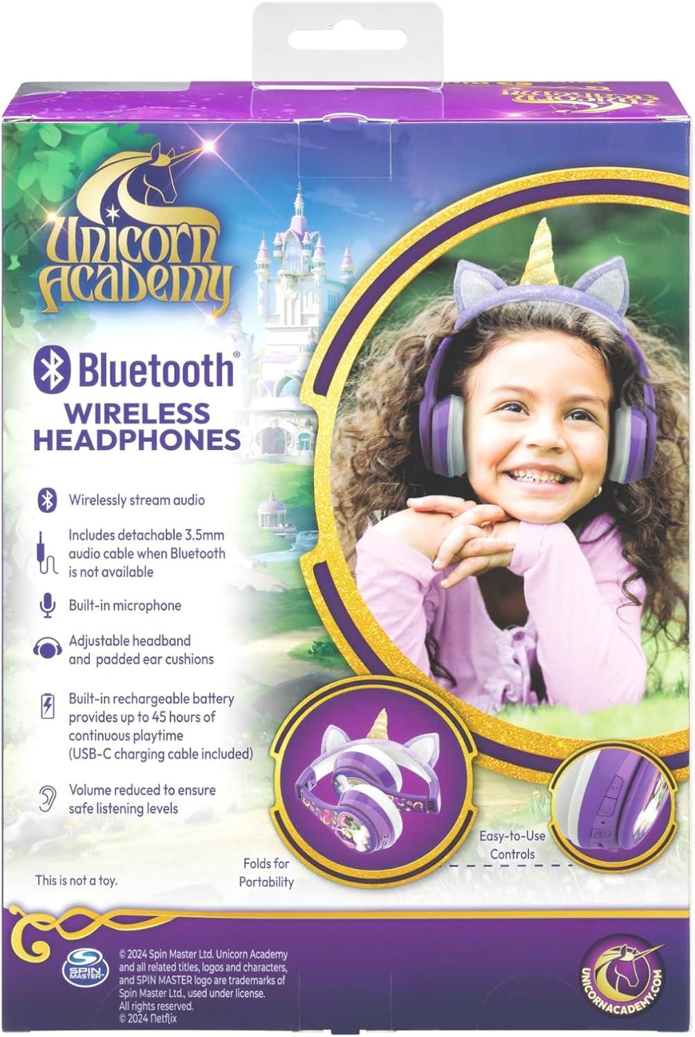 eKids Unicorn Academy Bluetooth Headphones, Wireless Headphones with Microphone Includes Aux Cord, Volume Reduced Kids Foldable Earphones for School, Home, or Travel