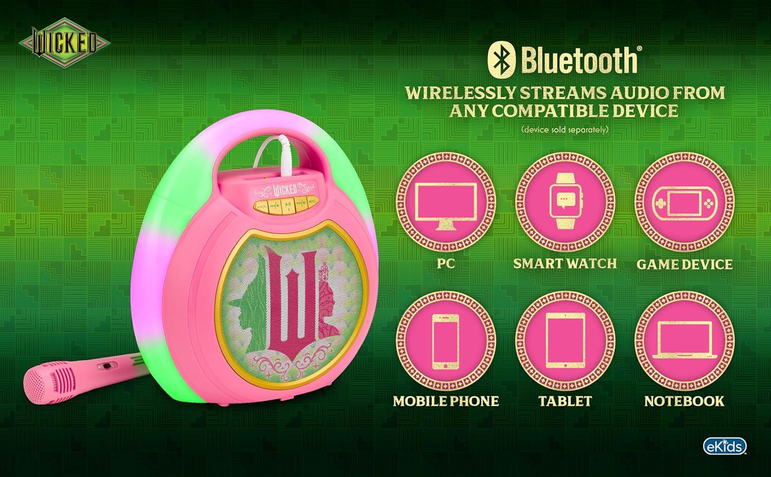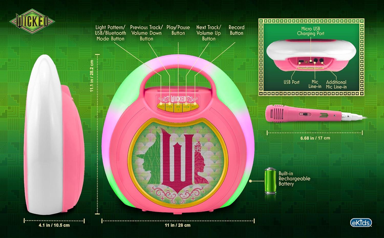 eKids Wicked Karaoke Machine for Kids, Bluetooth Speaker with Microphone Designed for Fans of Wicked Toys