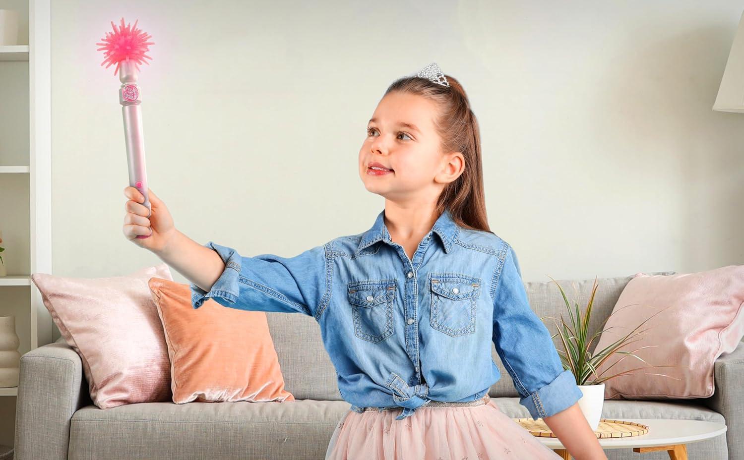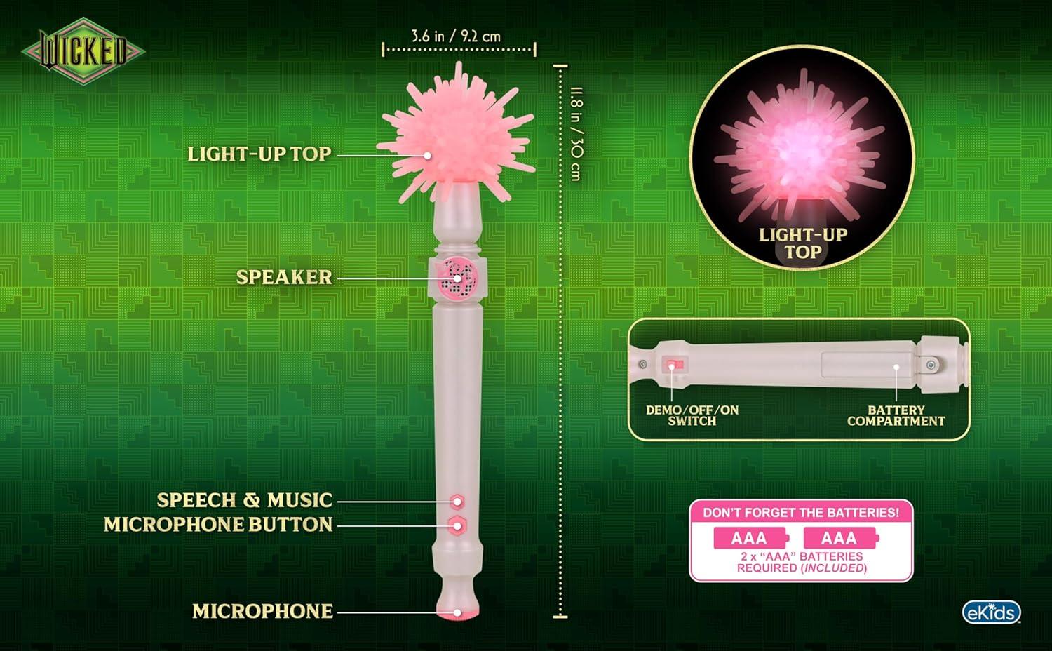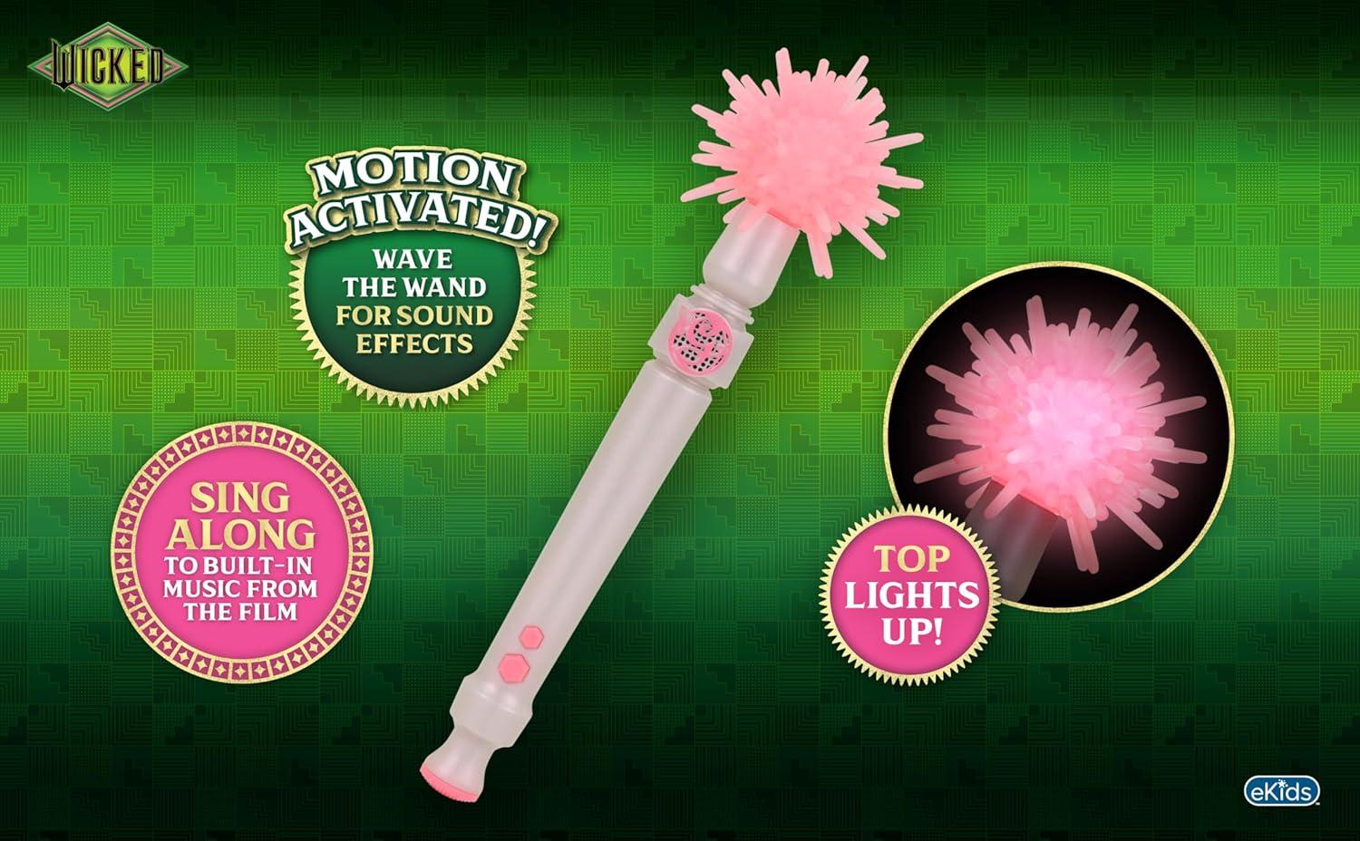 Wicked Design: This children’s toy features a cute pink design and graphics inspired by Glinda’s magic wand from the new film, Wicked.