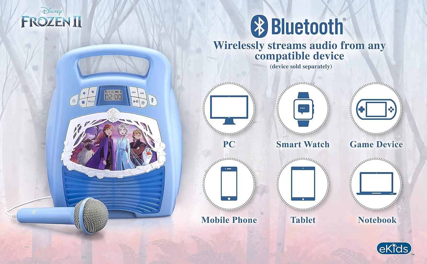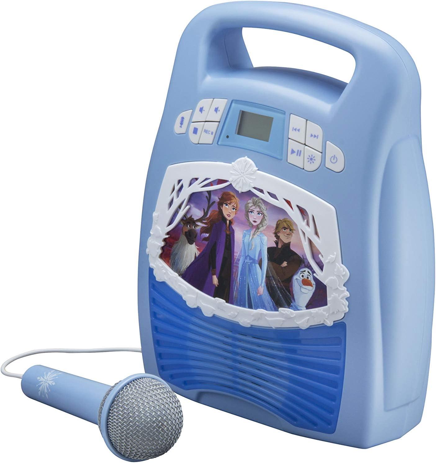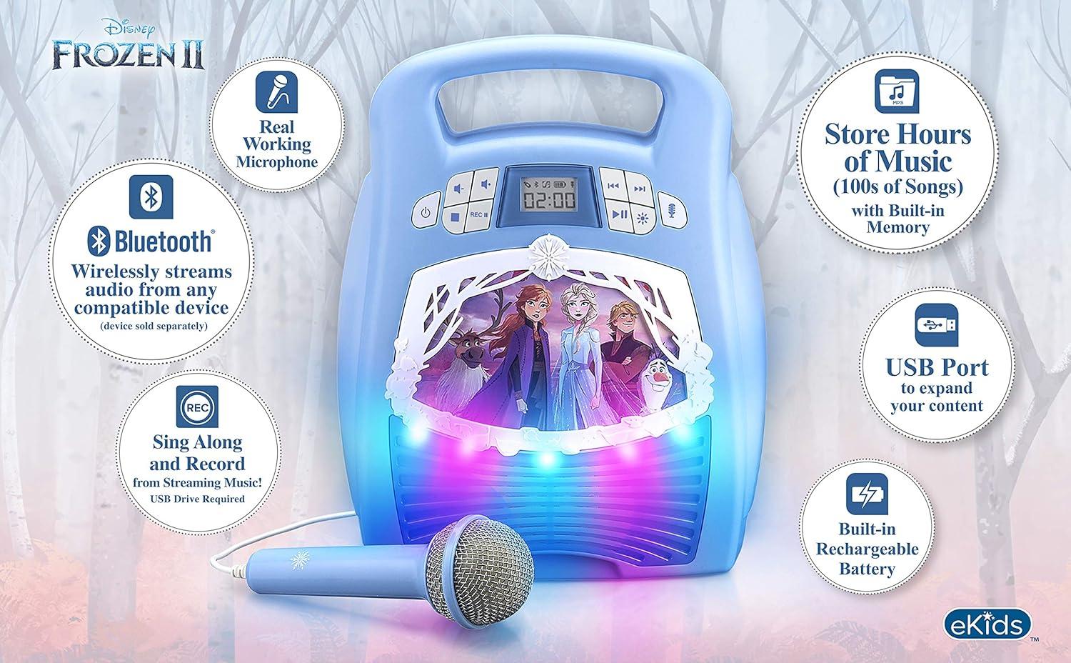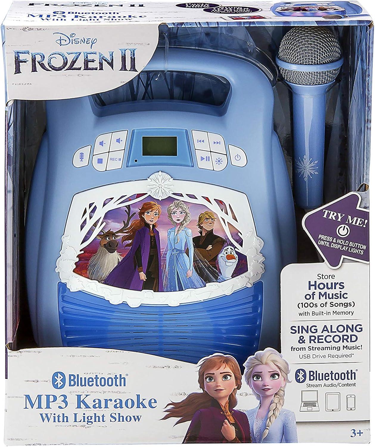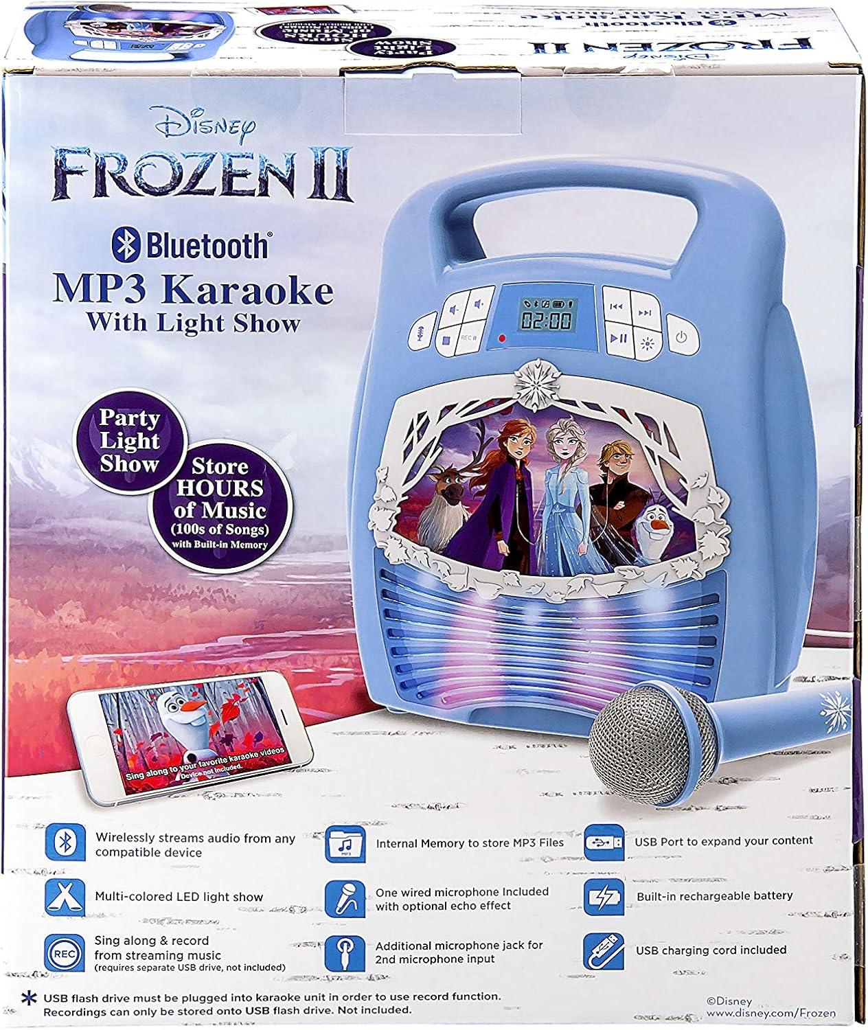 Frozen 2 Bluetooth Portable MP3 Karaoke Machine Player with Light Show Store Hours of Music with Built in Memory Sing Along Using The Real Working Microphone USB Port to Expand Your Content(Newer Version (Record Feature))