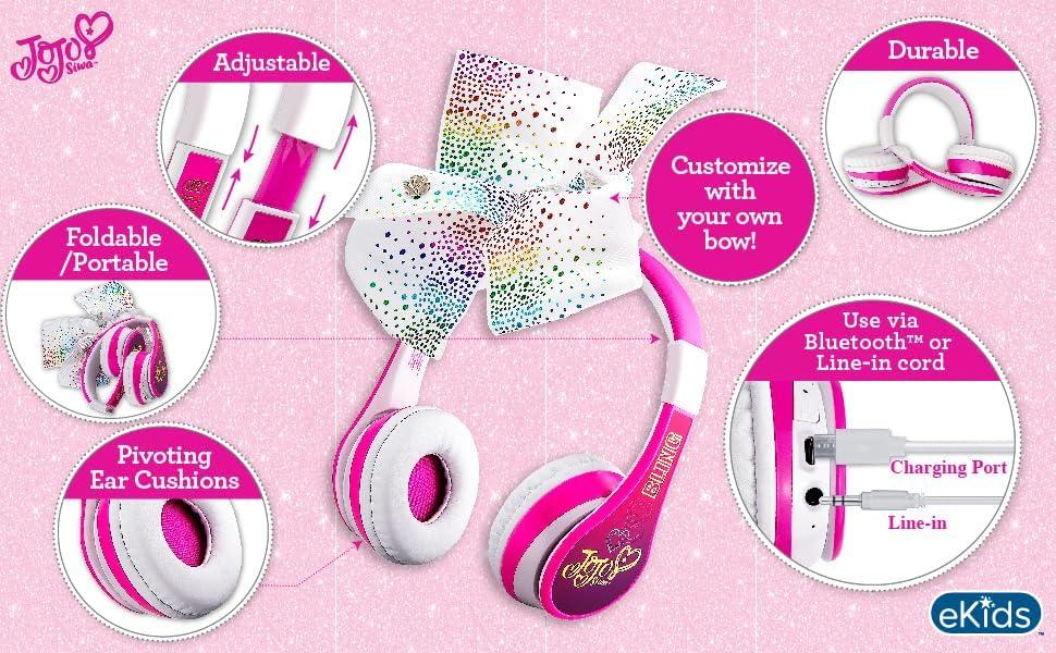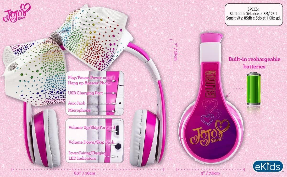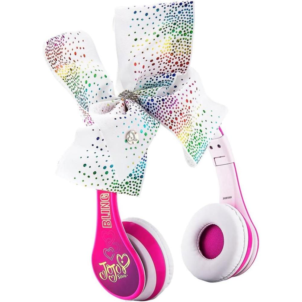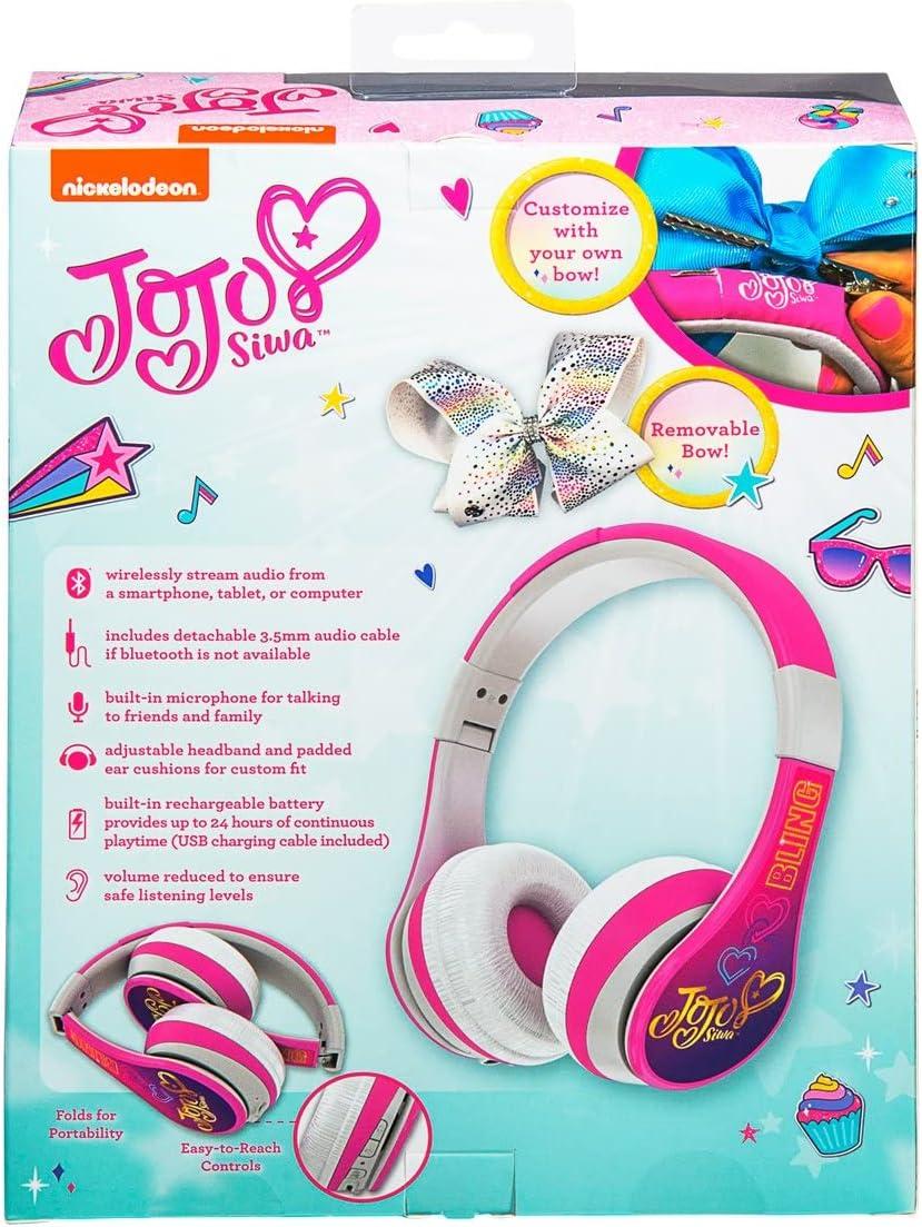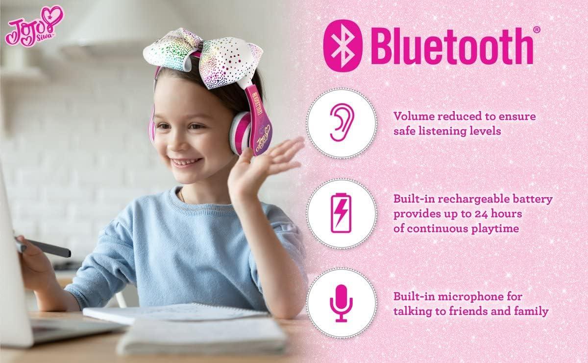 JoJo Siwa Kids Bluetooth Headphones for Wireless Rechargeable Foldable Bluetooth Headphones with Microphone Kid Friendly Sound and Bonus Detachable Cord